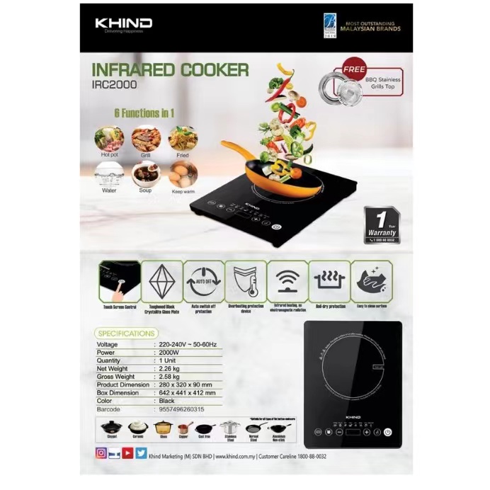 Khind 6 in 1 Infrared cooker compatible all type pot IRC2000 INDUCTION COOKER