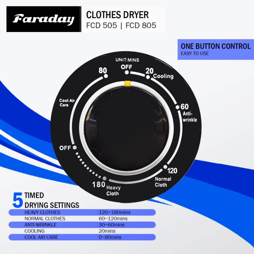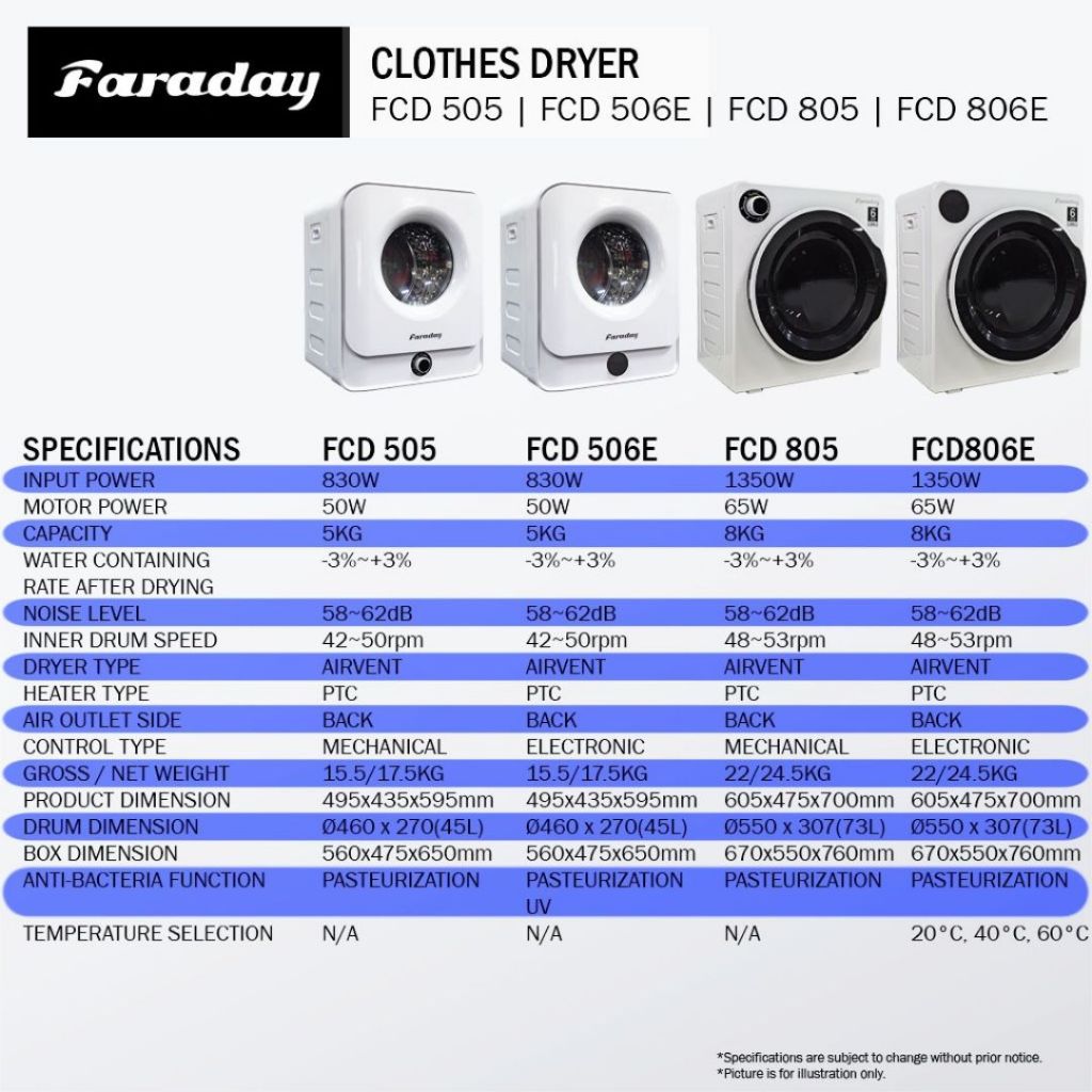 KHIND 8KG CLOTHES DRYER CD819/ FARADAY CLOTHES DRYER (5KG) FCD-505/FCD-506E / (8KG) FCD-805/FCD-806E