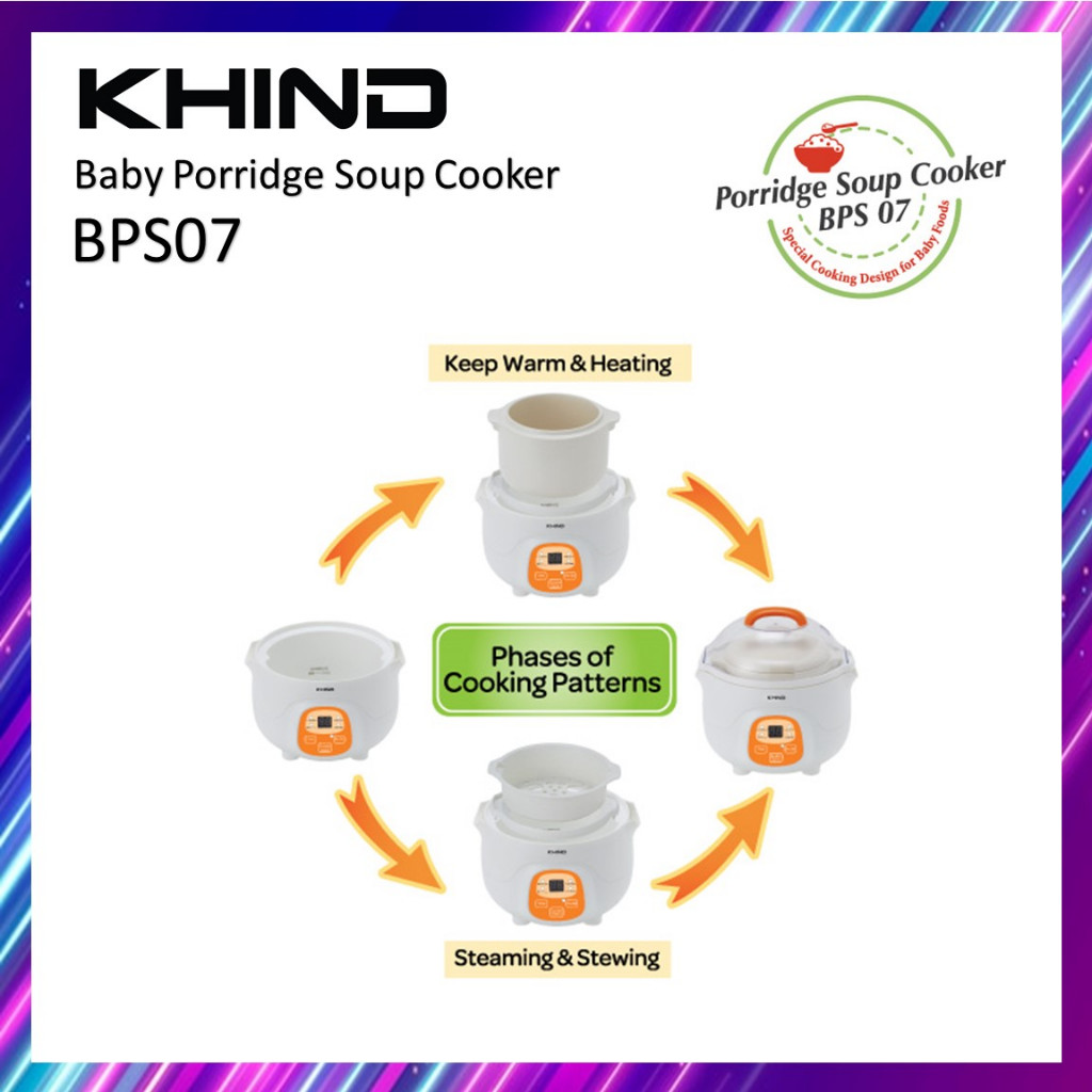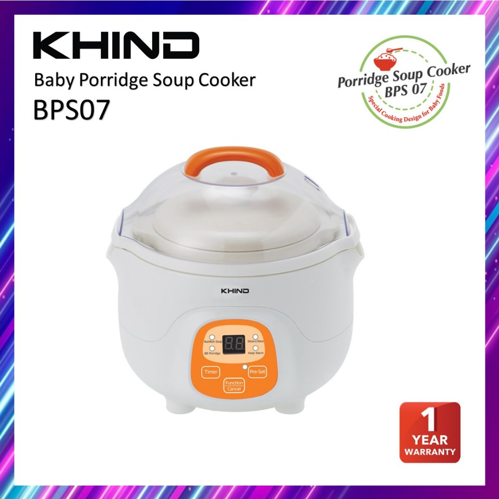 KHIND BPS07 Baby Porridge Soup Cooker Soup Cooker 0.7L Ceramic Inner Pot Periuk Bayi Multi Cooker