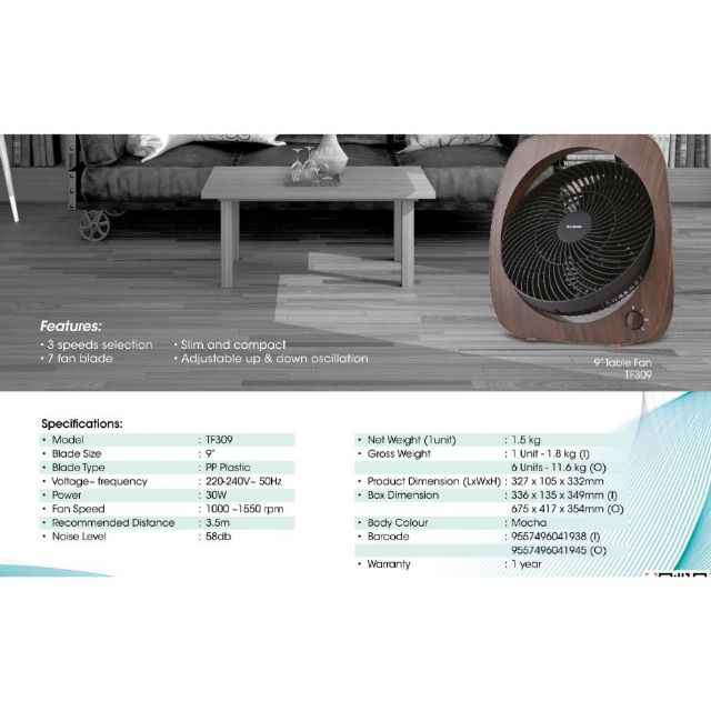 Khind Box Fan TF309(9")