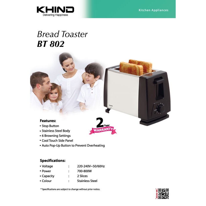 Khind Bread Toaster 2 Slices BT802