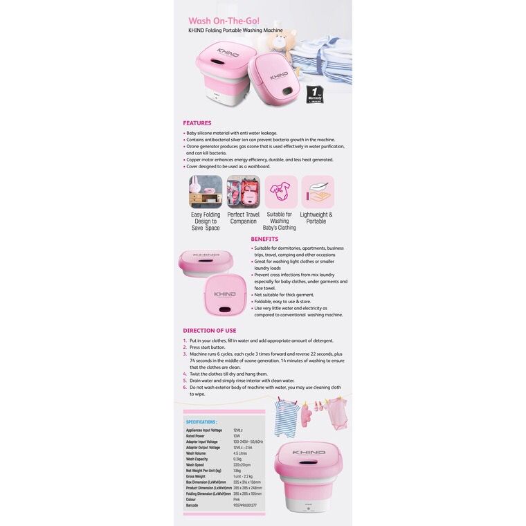 Khind Foldable Washing Machine WM08F Travel Washer Mesin Basuh Mini Portable Kecil Kecik Boleh Lipat Baju Baby Bayi
