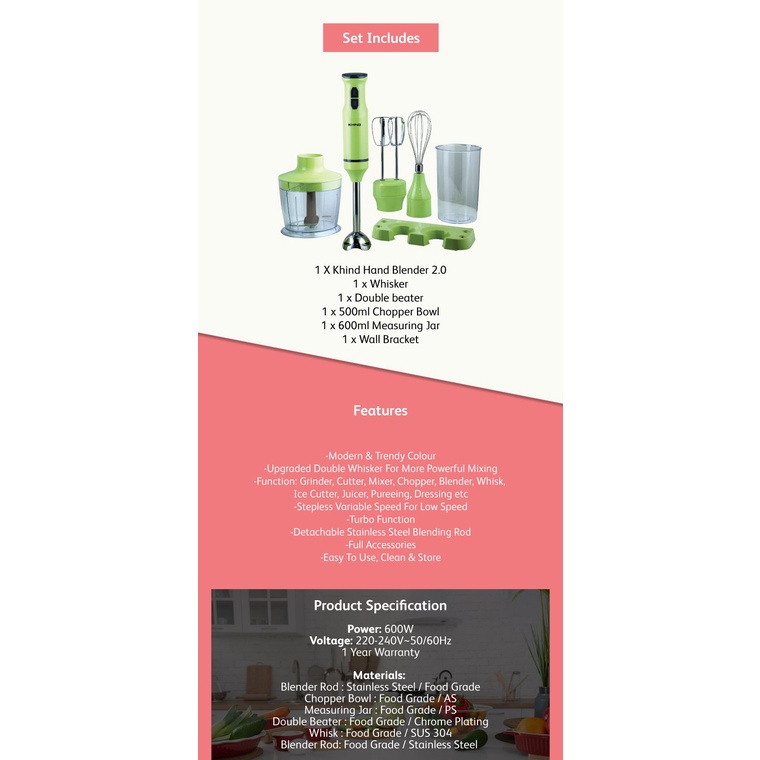 Khind Hand Blender BH600AS (Green)