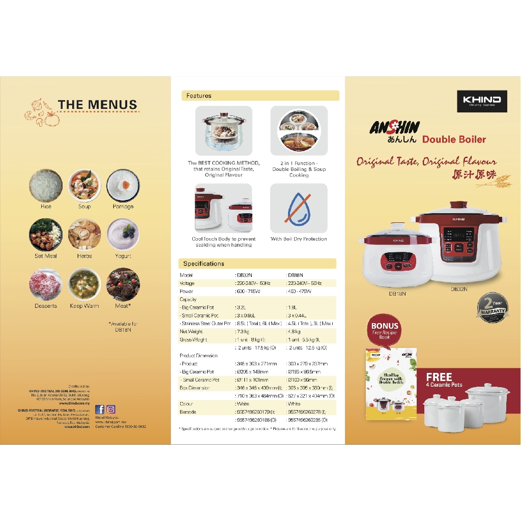 Khind Periuk Berlapis 3.2L Anshin Double Boiler DB32N