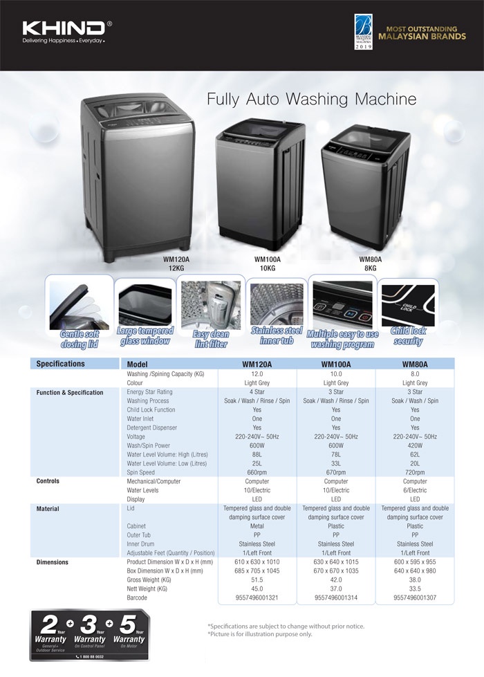 Khind WM120A 12KG Fully Auto Washing Machine Top Load Mesin Basuh