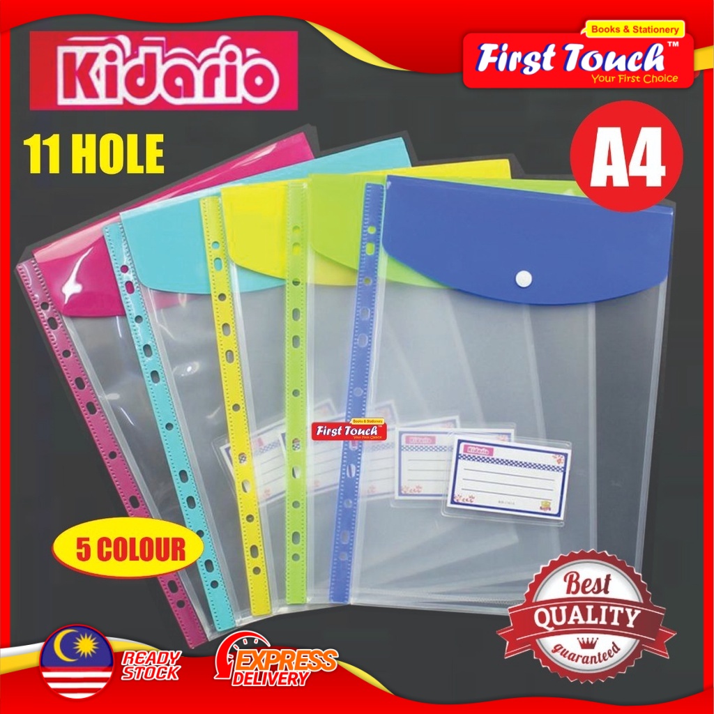 Kidario A4 11-Hole File Bag With Button KH-1163A Button File Pocket Bag Fit To 2D , 3D & 4D File
