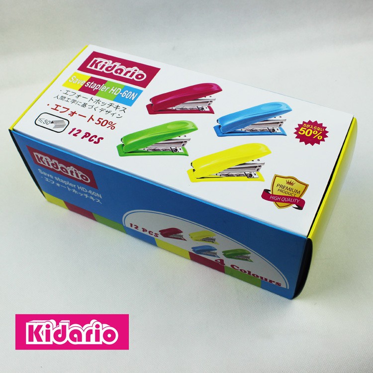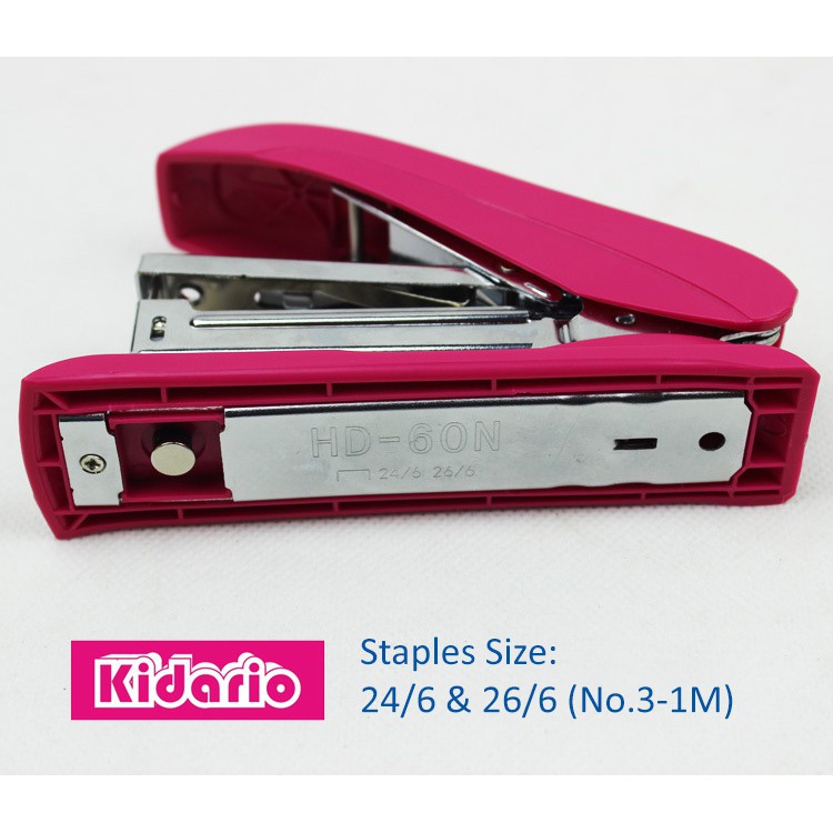 Kidario Stapler HD-60N / 20 sheets / 80 gsm Paper / Staples bullet: 24/6, 26/6, No.3-1M / Green, Pink, Yellow & Blue