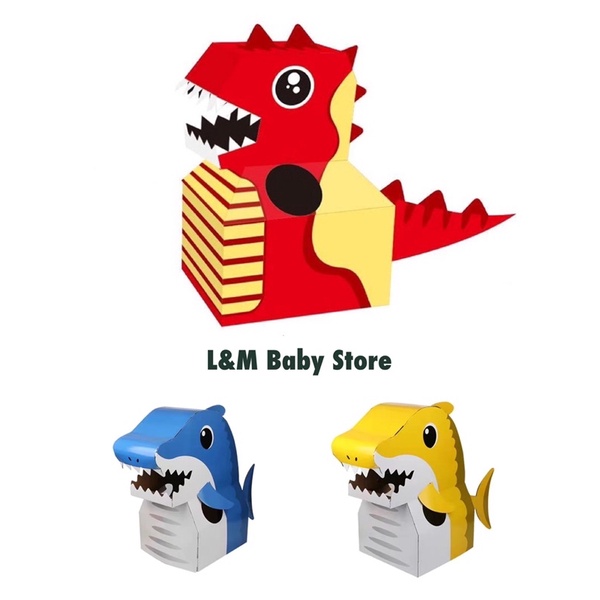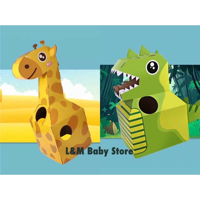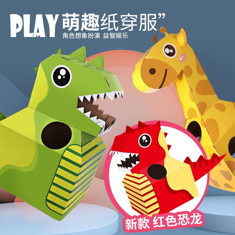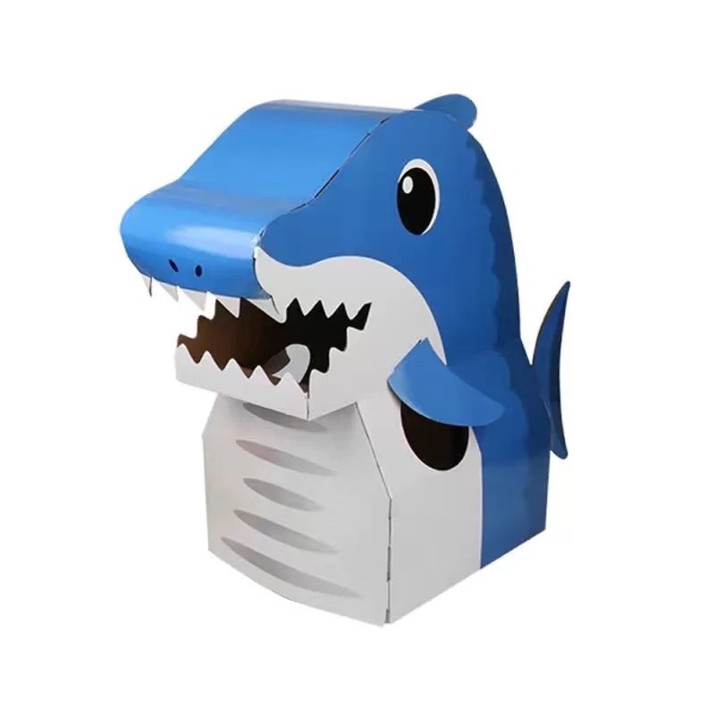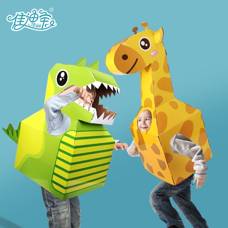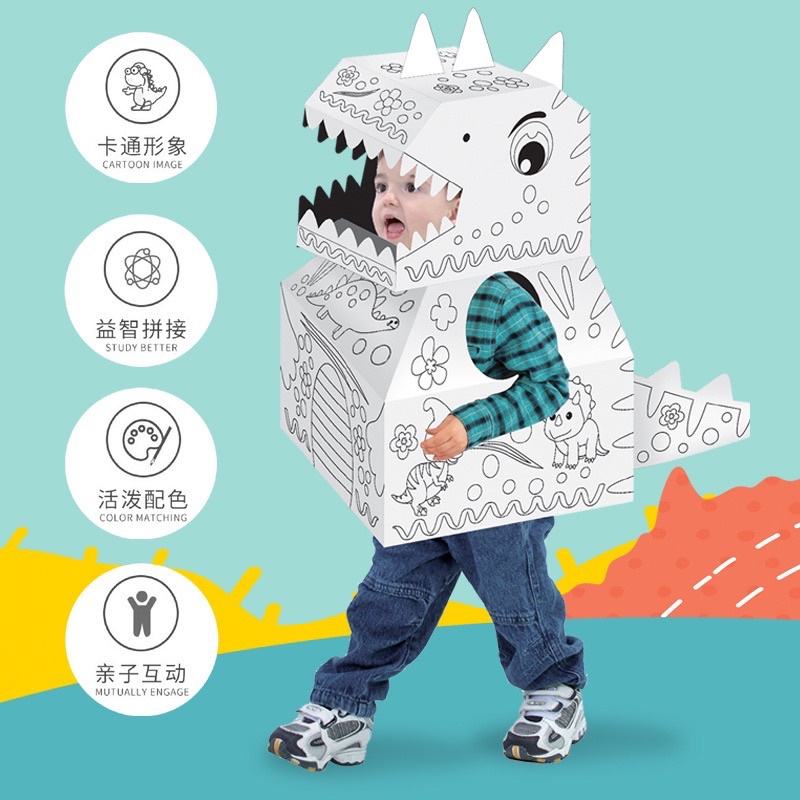 Kids 3D DIY Handmade Carton Box Toy Cardboard Wearable Dinosaur Baby Shark cosplay Budak Costume Mainan Kotak Karton