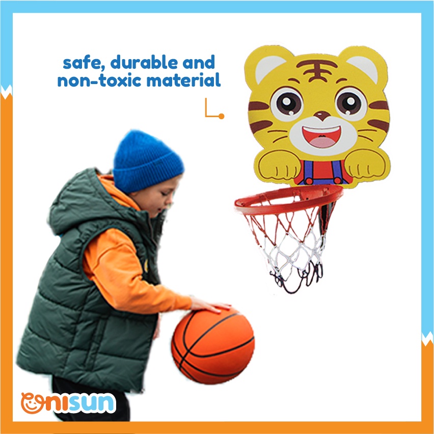 Kids Boy Fun Sport Indoor Outdoor Basketball With Free Ball And Tiger Panda Cute Net Playset Toy playset (Mainan Bola)
