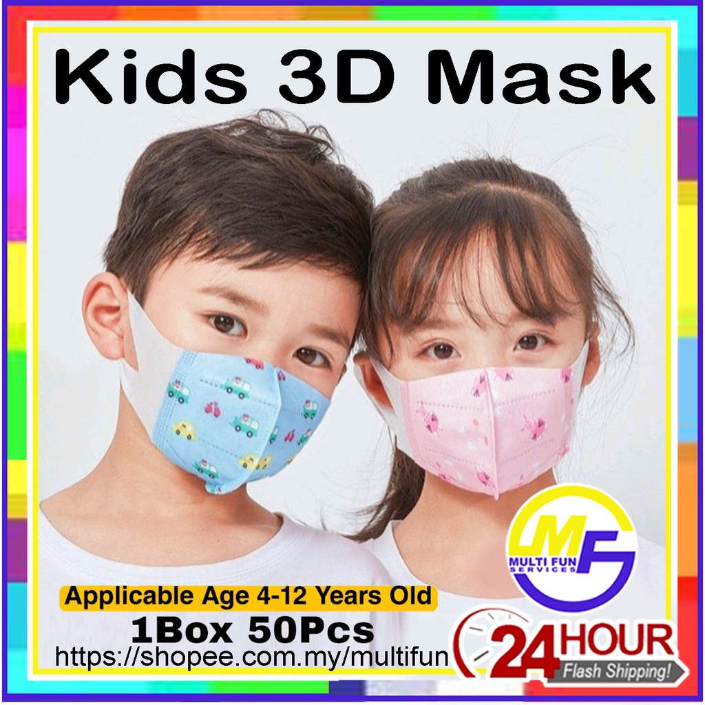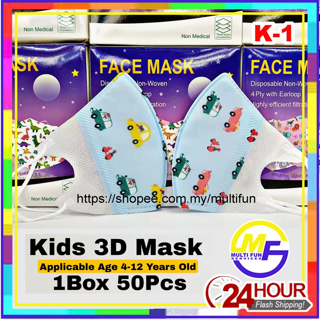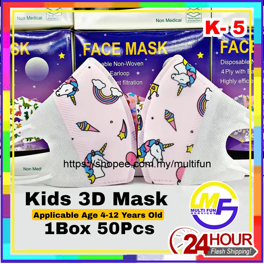 Kids Children 3D Duckbill Disposable Earloop Cartoon Face Mask Pelitup Muka Budak Kartun Masker 50pcs