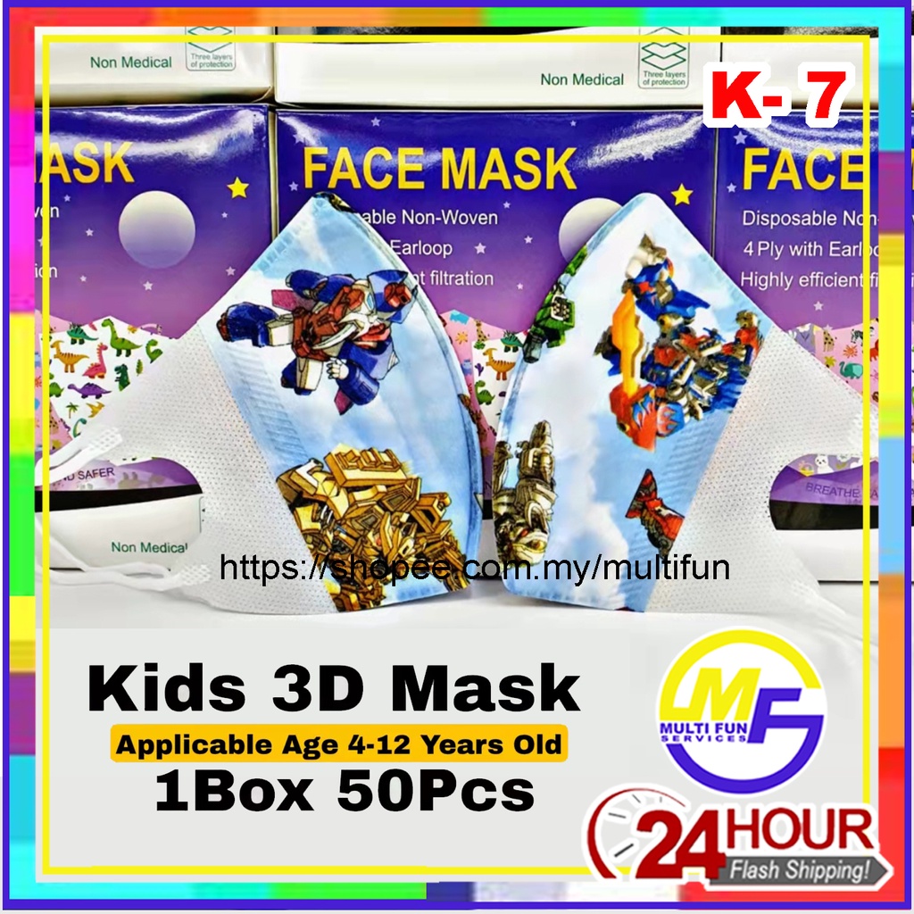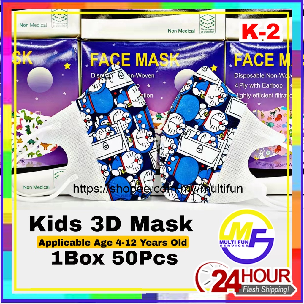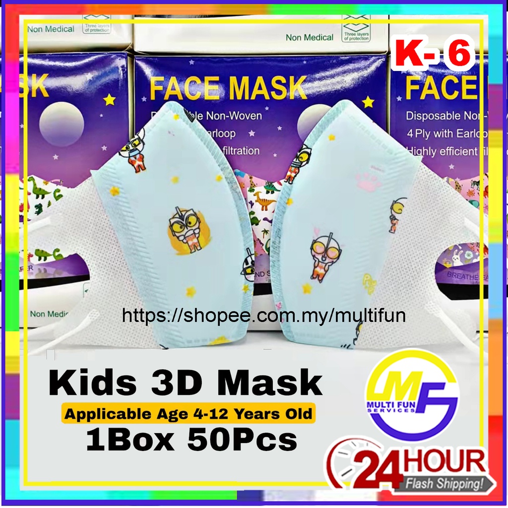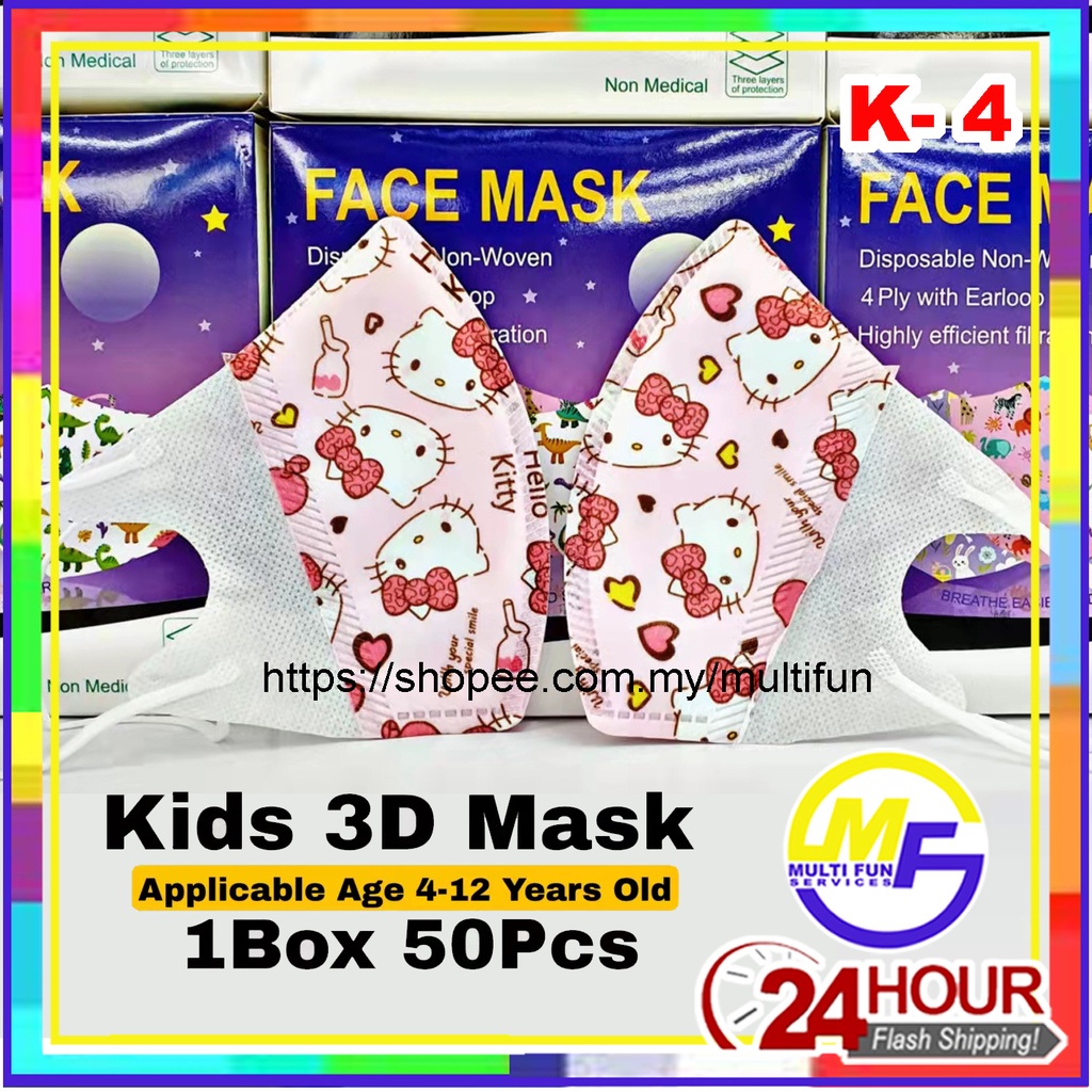 Kids Children 3D Duckbill Disposable Earloop Cartoon Face Mask Pelitup Muka Budak Kartun Masker 50pcs