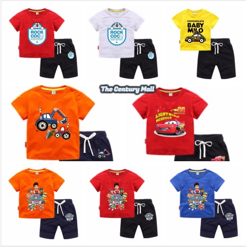 Kids Cloth Boys Girls Unisex Set 5-8T Cartoon Suits Baju Kanak-kanak Baby Milo Mcqueen Paw Cars Doraemon
