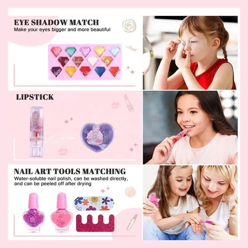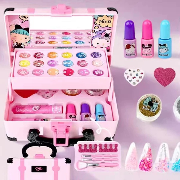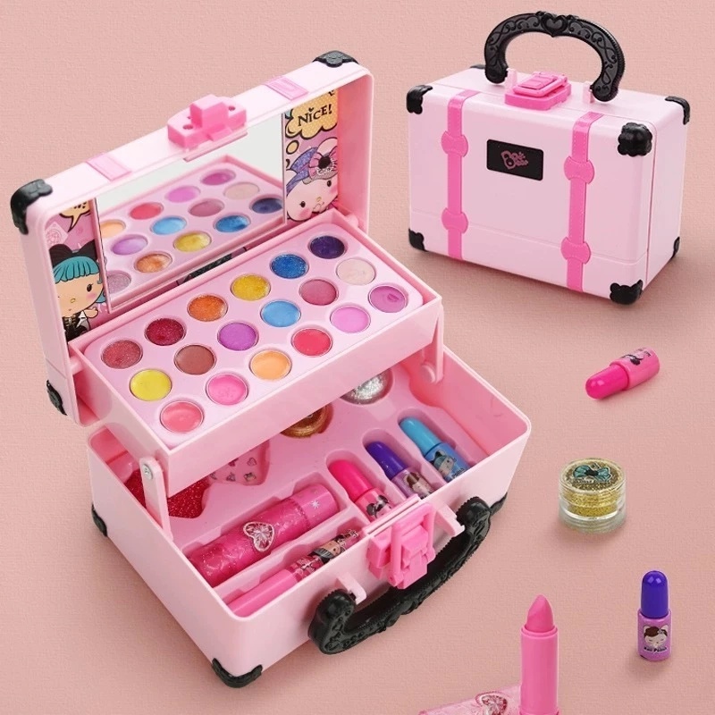 32PCS Make Up Kids Girls Real Makeup Kit Washable Non-toxic Makeup Toy Set Retro Beauty Makeup