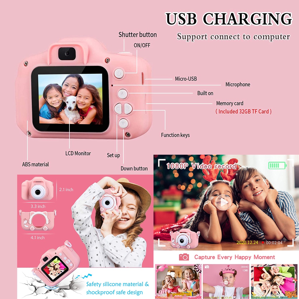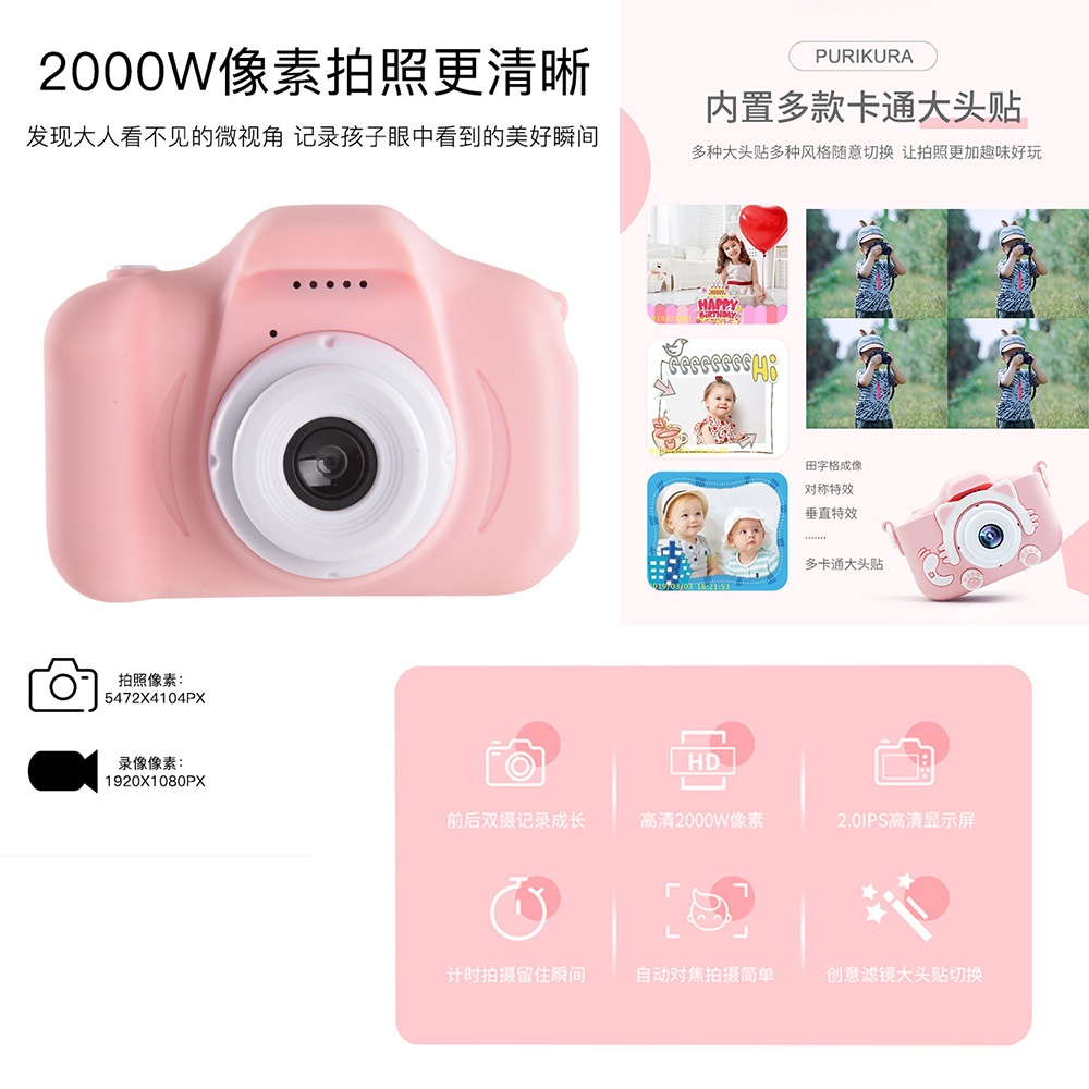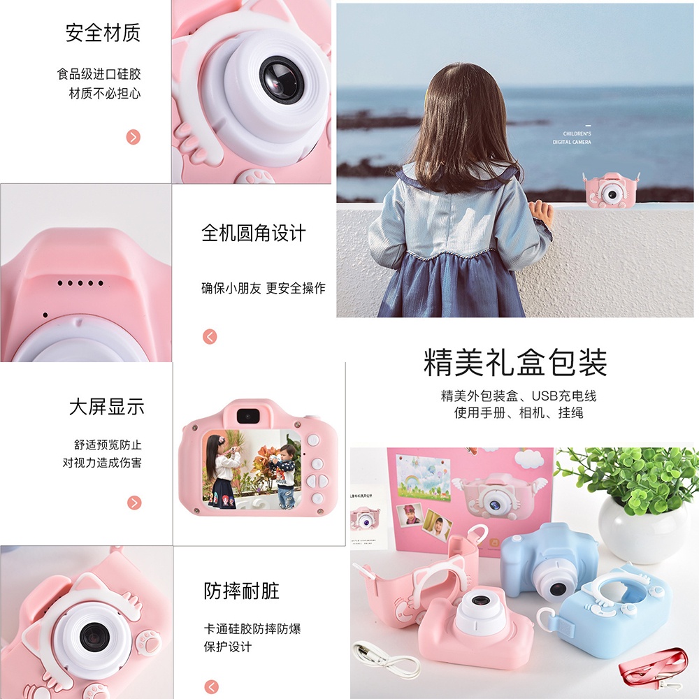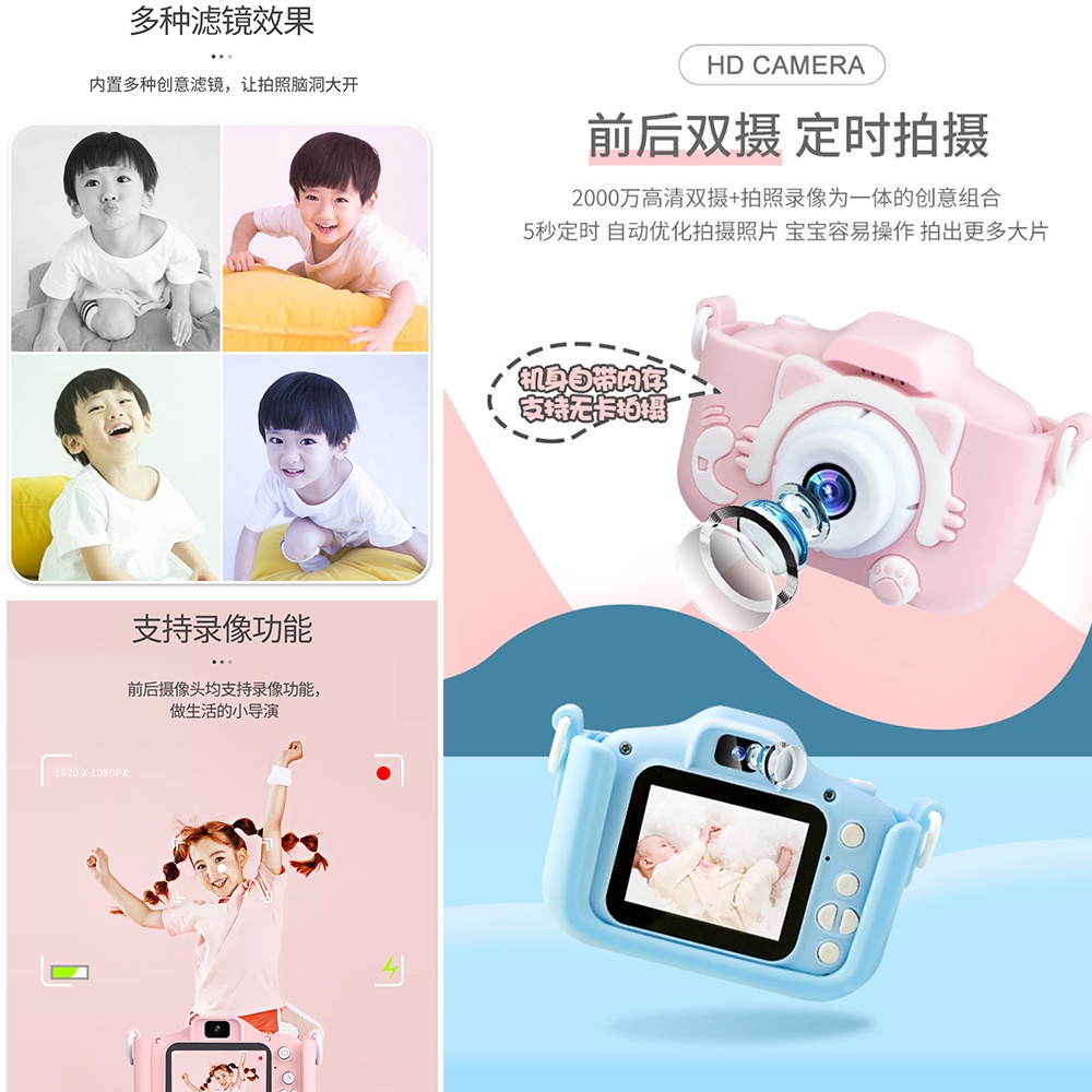 Kids Digital Camera Dual 20MP Cat Selfie HD Photo Video Recording Children Toy For Kid Child Mini Cute Cartoon