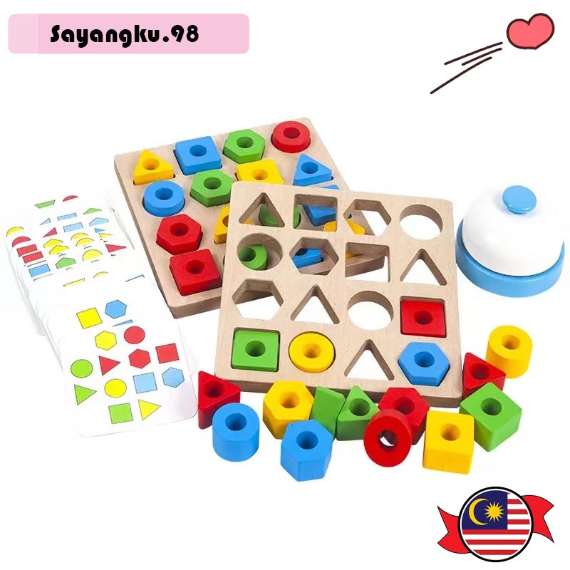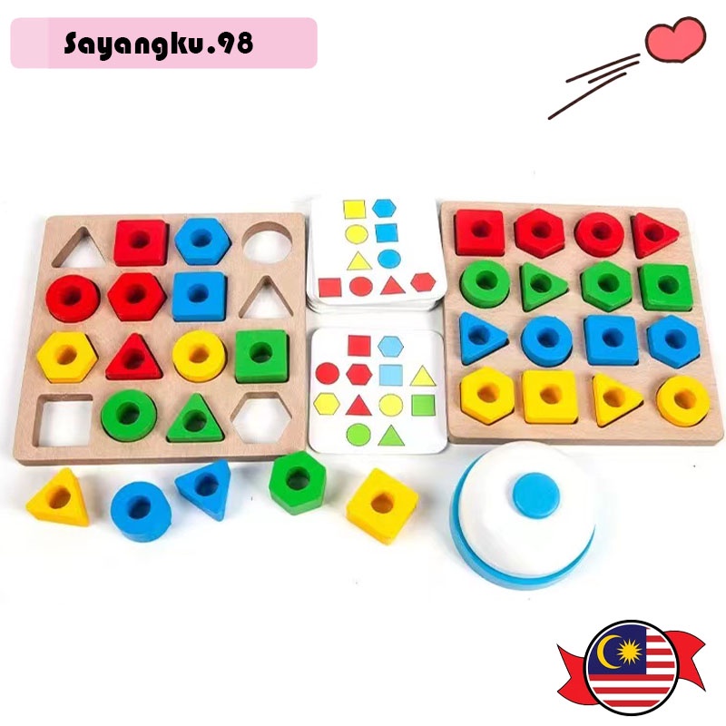 Kids Education Learning Wooden Geometric Shape Blocks Matching Sorting Board Toys Wooden Matching Shape Geometry Pairing