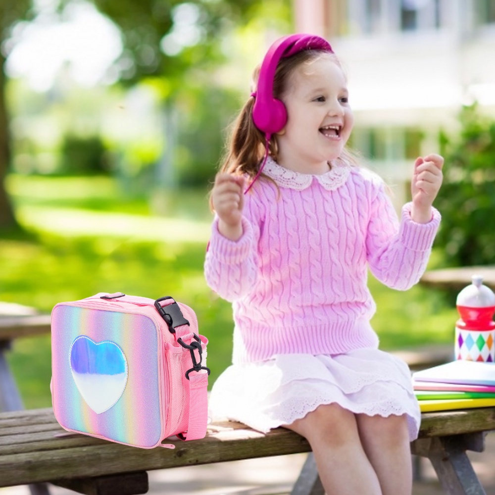 Kids Insulated Lunch Boxes For School, Girls Lunch Bag Rainbow With Detachable Shoulder Strap, Cute Lunch Box School & Picnic