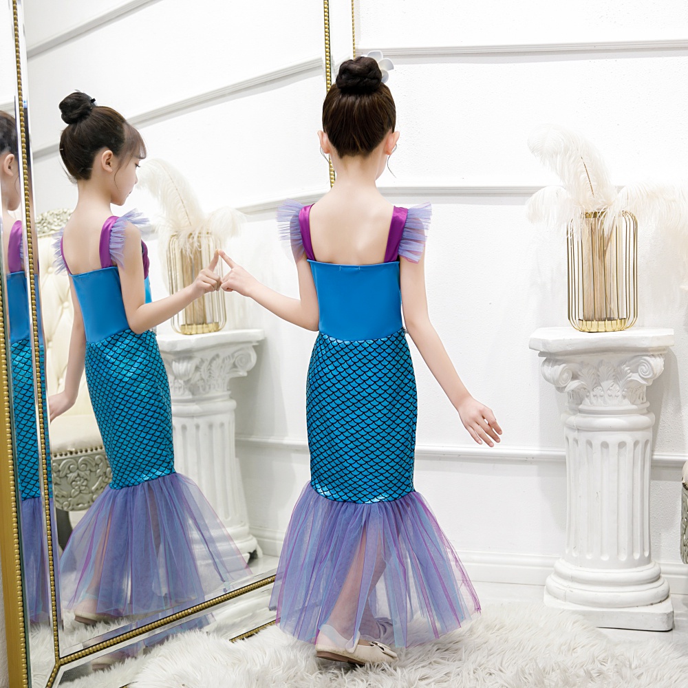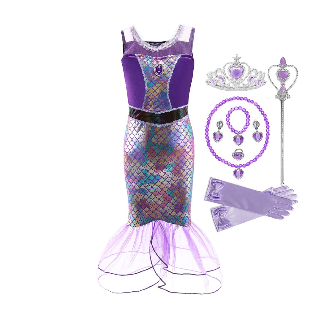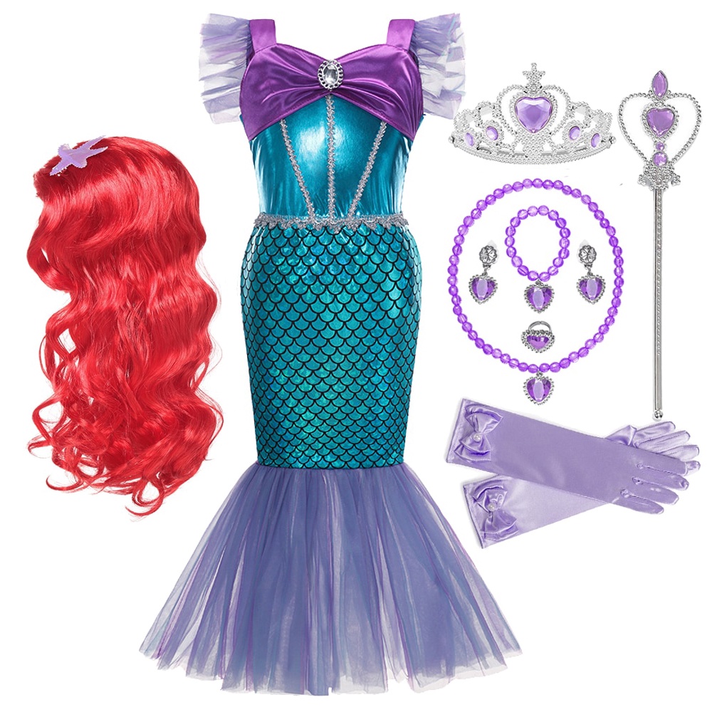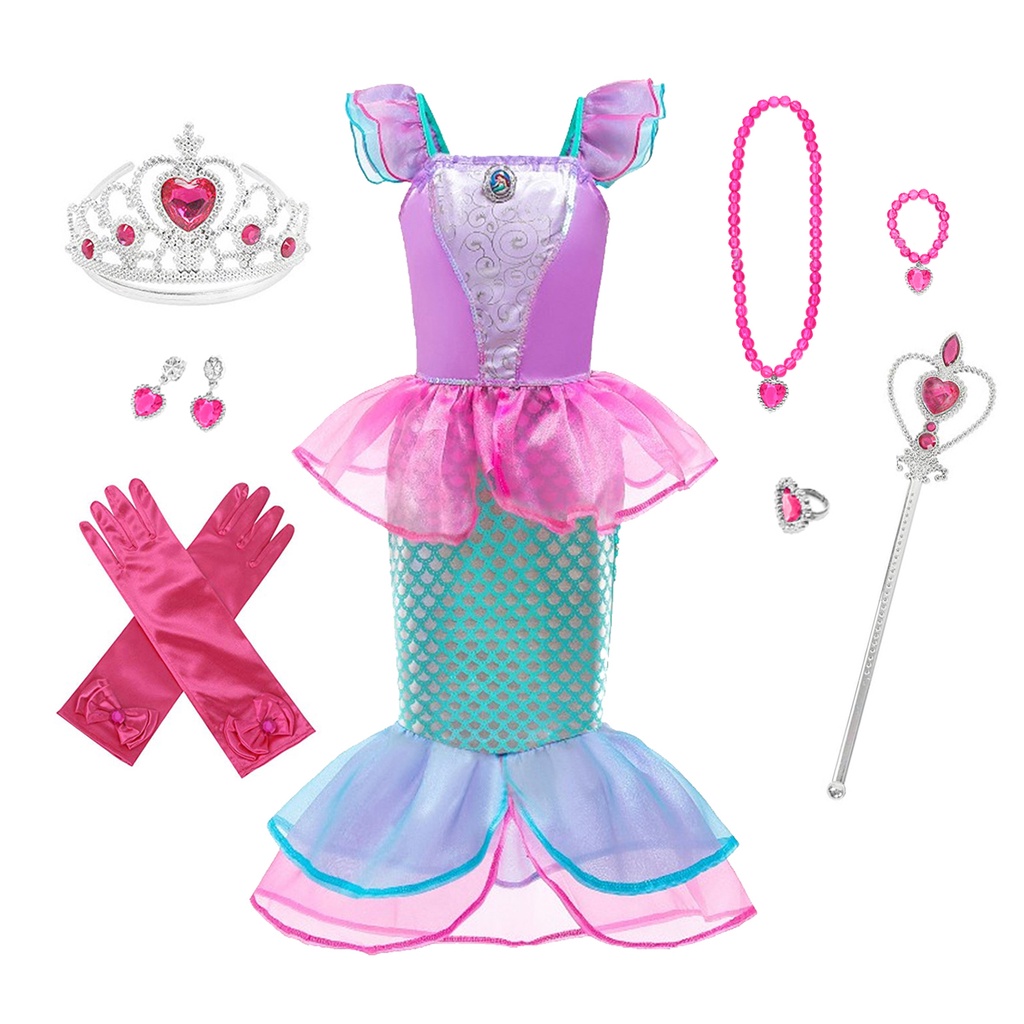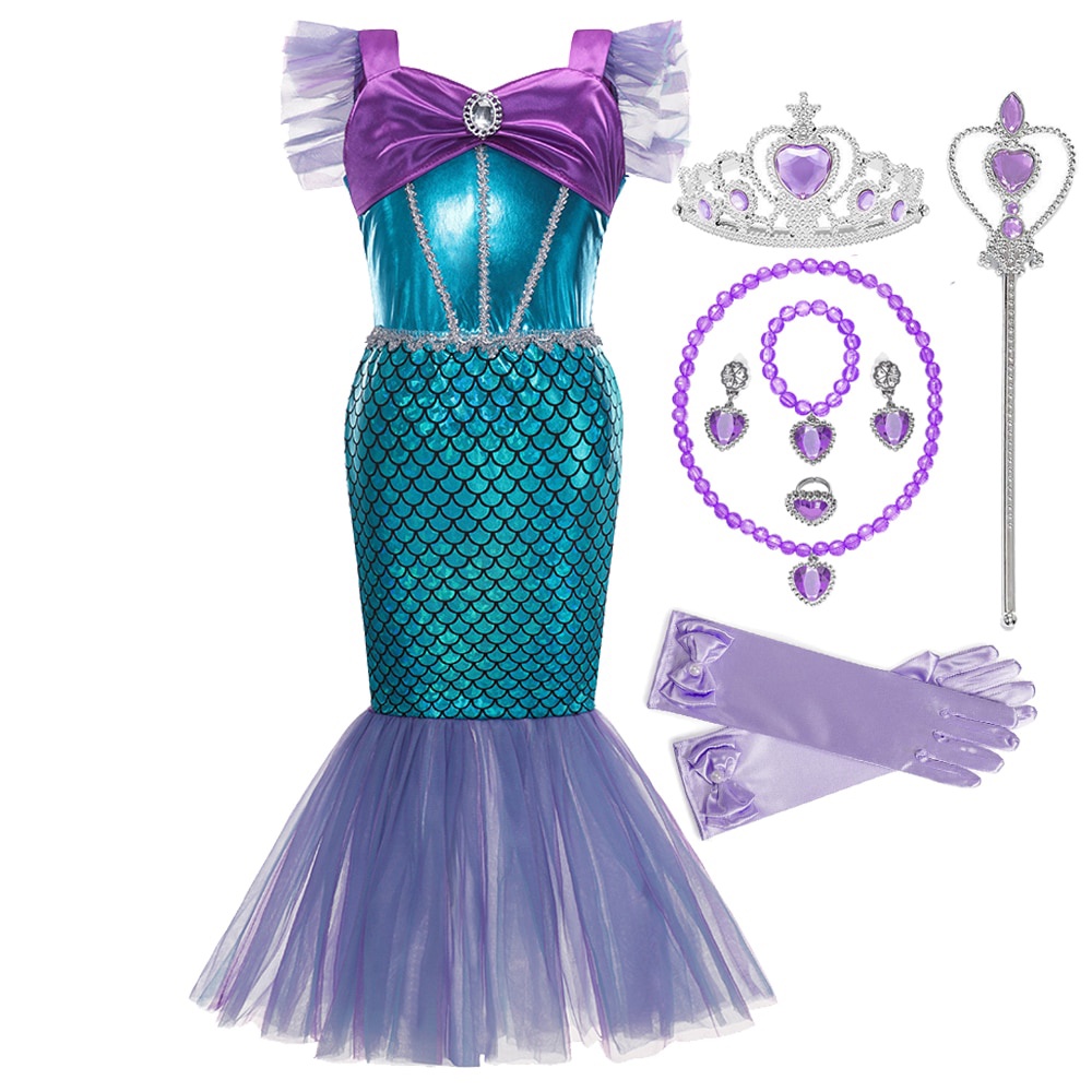 Kids Mermaid Costume Ariel Princess Dress Set Girls Fancy Dress Up Kid Cosplay Birthday Party Clothes
