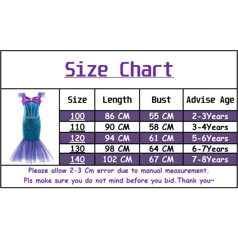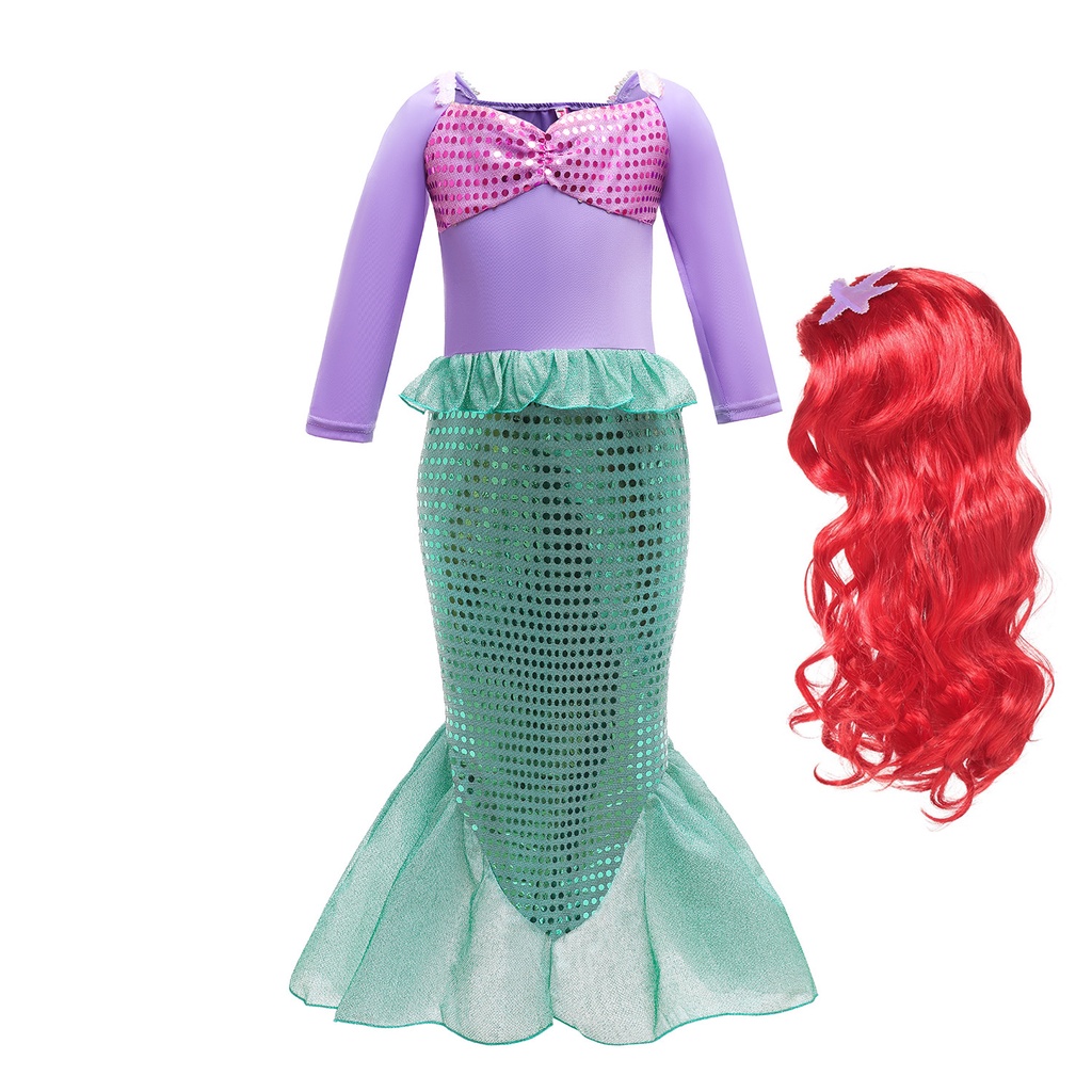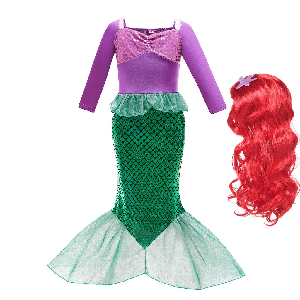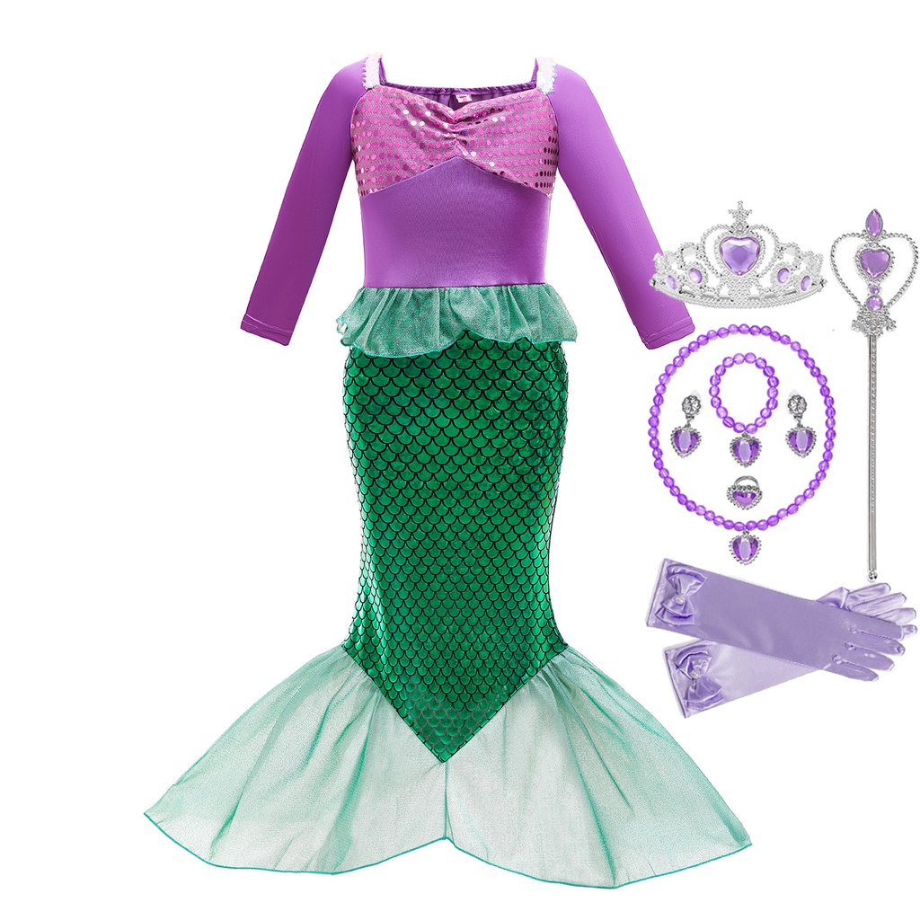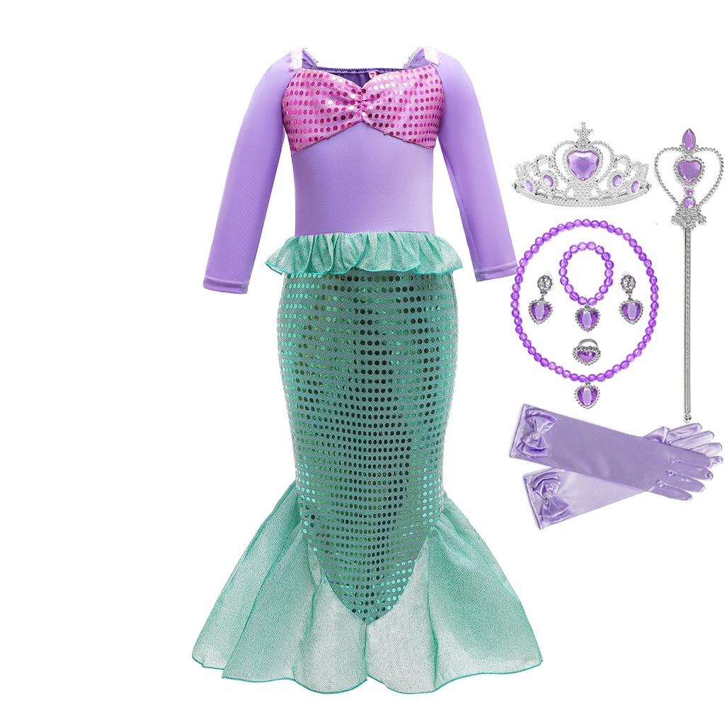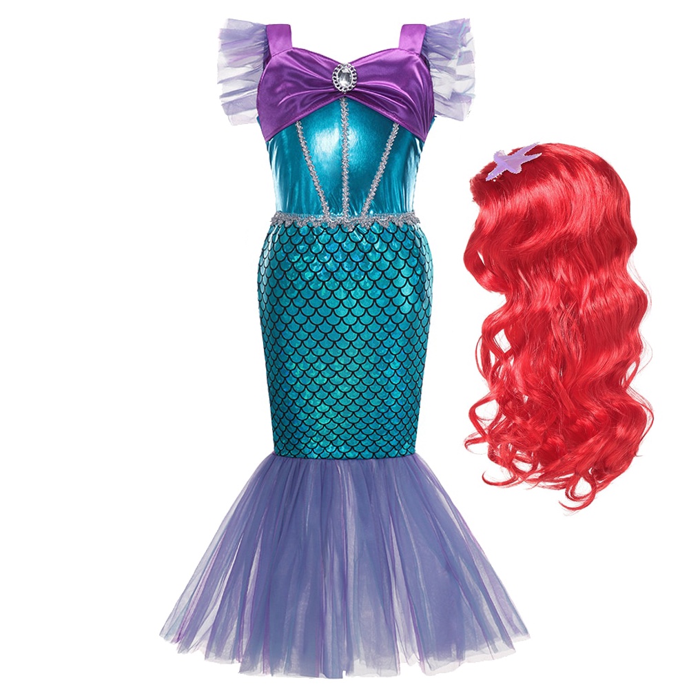 Kids Mermaid Costume Ariel Princess Dress Set Girls Fancy Dress Up Kid Cosplay Birthday Party Clothes