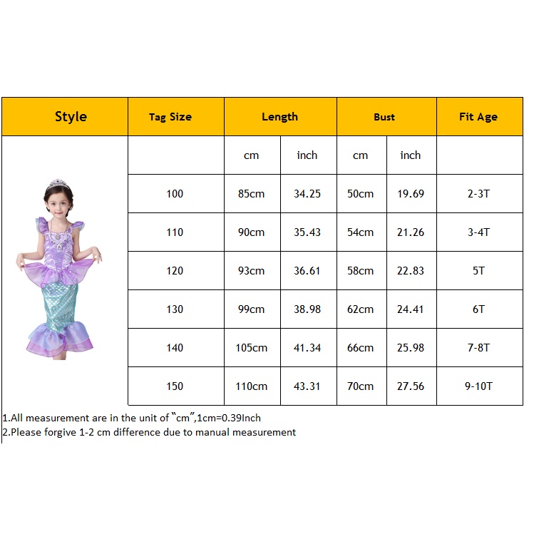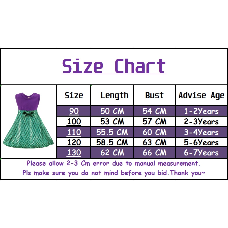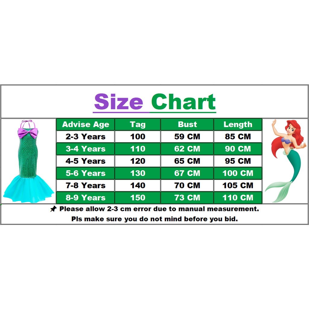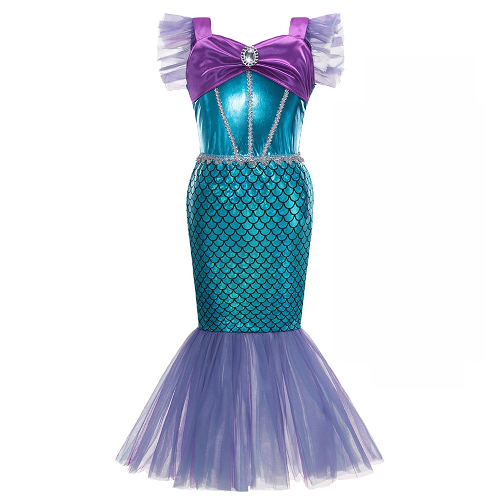 Kids Mermaid Dress Girls Ariel Mermaid Costume Disney Cartoon Birthday Party Princess Dress Up