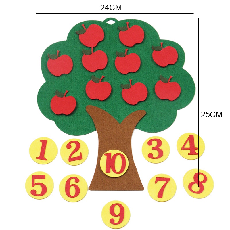 Kids Montessori Math Teaching Aids Number Matching Toy Felt Apple Tree Counting Finger Toddler Early Educational Toys