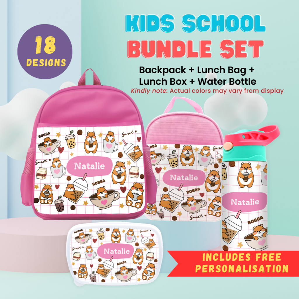 Kids Personalised 4in1 Backpack Lunch Bag Lunch Box Water Bottle Pre-School Set