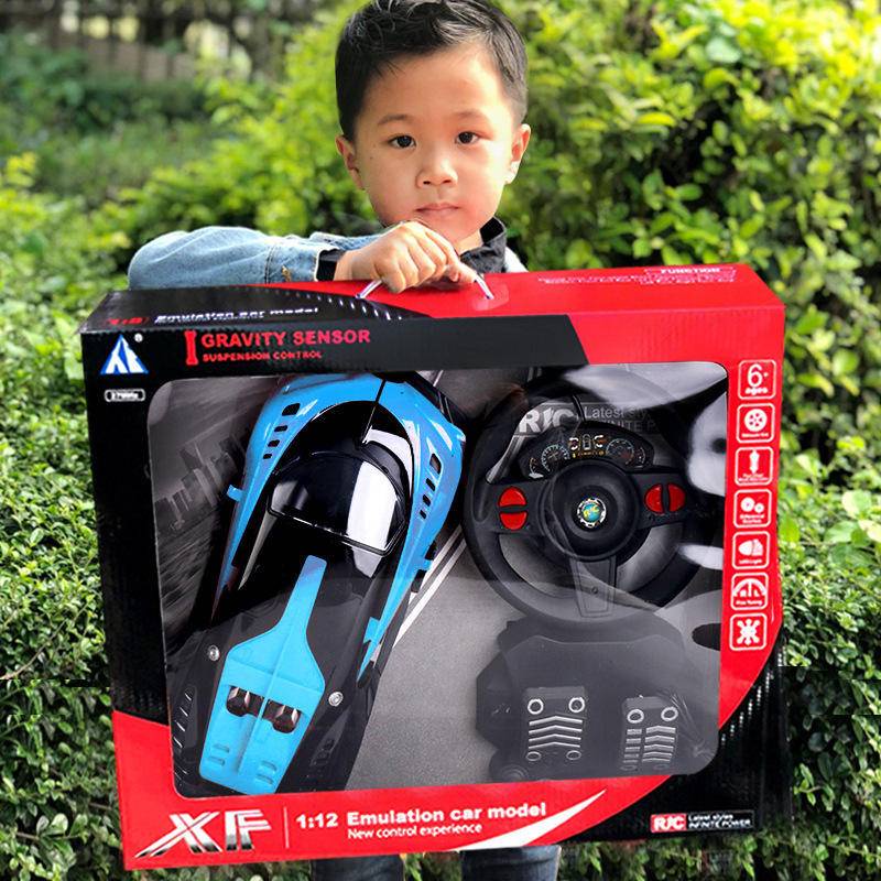 Kids Remote Control Car Racing Model Toys With Steering Wheel Gravity Induction And Foot Pedal Red Orange Blue