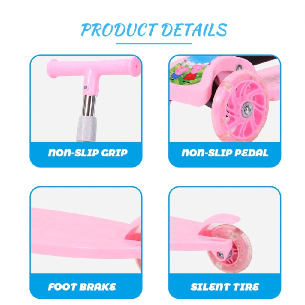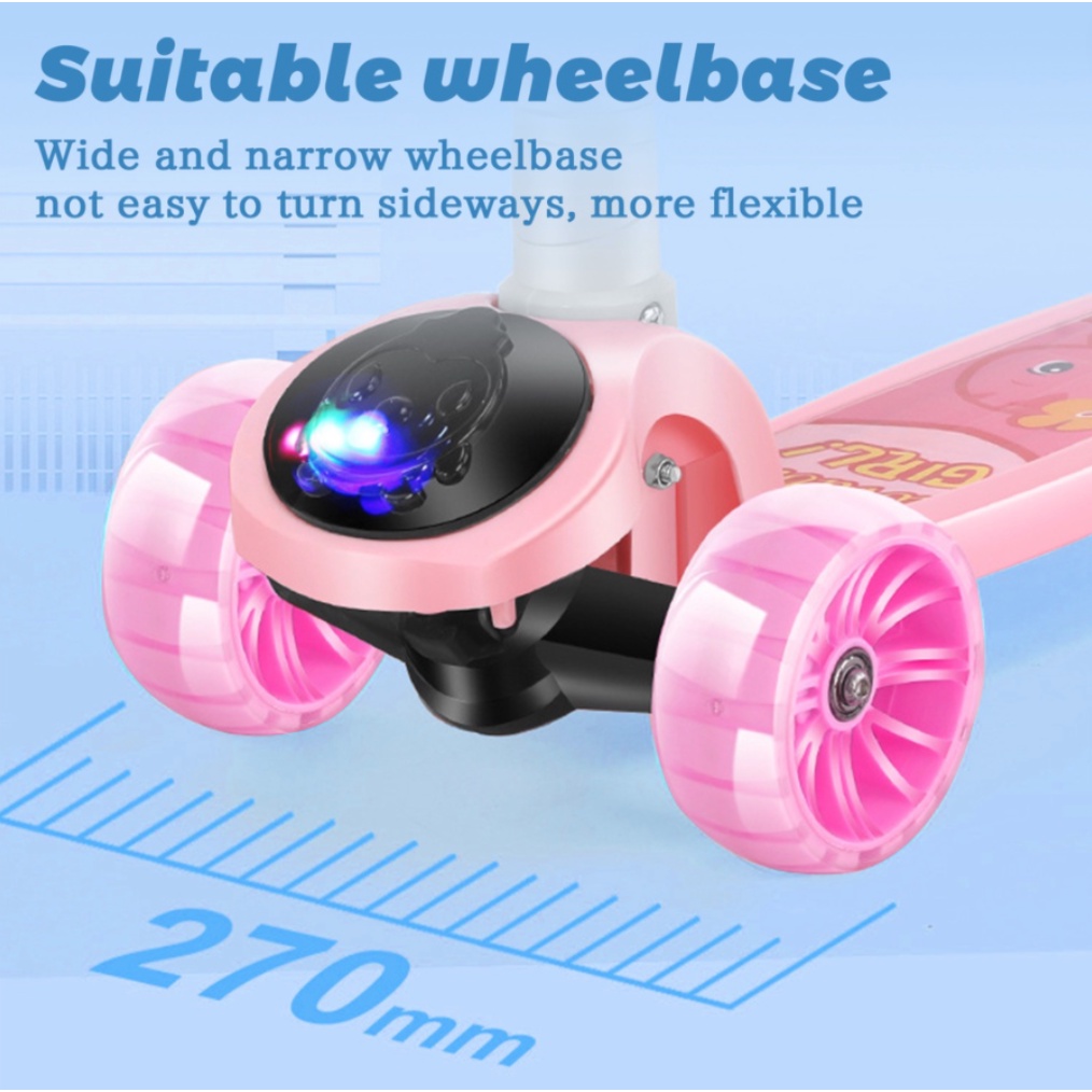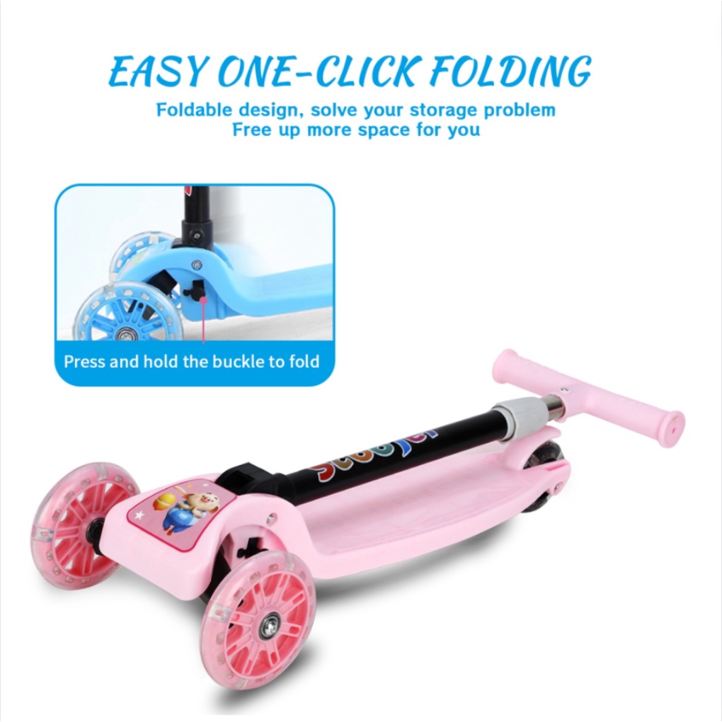 Kids Scooter With LED Wheels Foldable Skuter Kanak Scooter Kids Adjustable Height Mainan Budak Perempuan Lelaki Childr