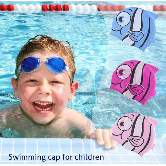Kids Swimming Hat Cap Silicone (2 PCS PER SET) Animal Fish Shaped Cute Swim Caps for Kids Cap Boy & Girl