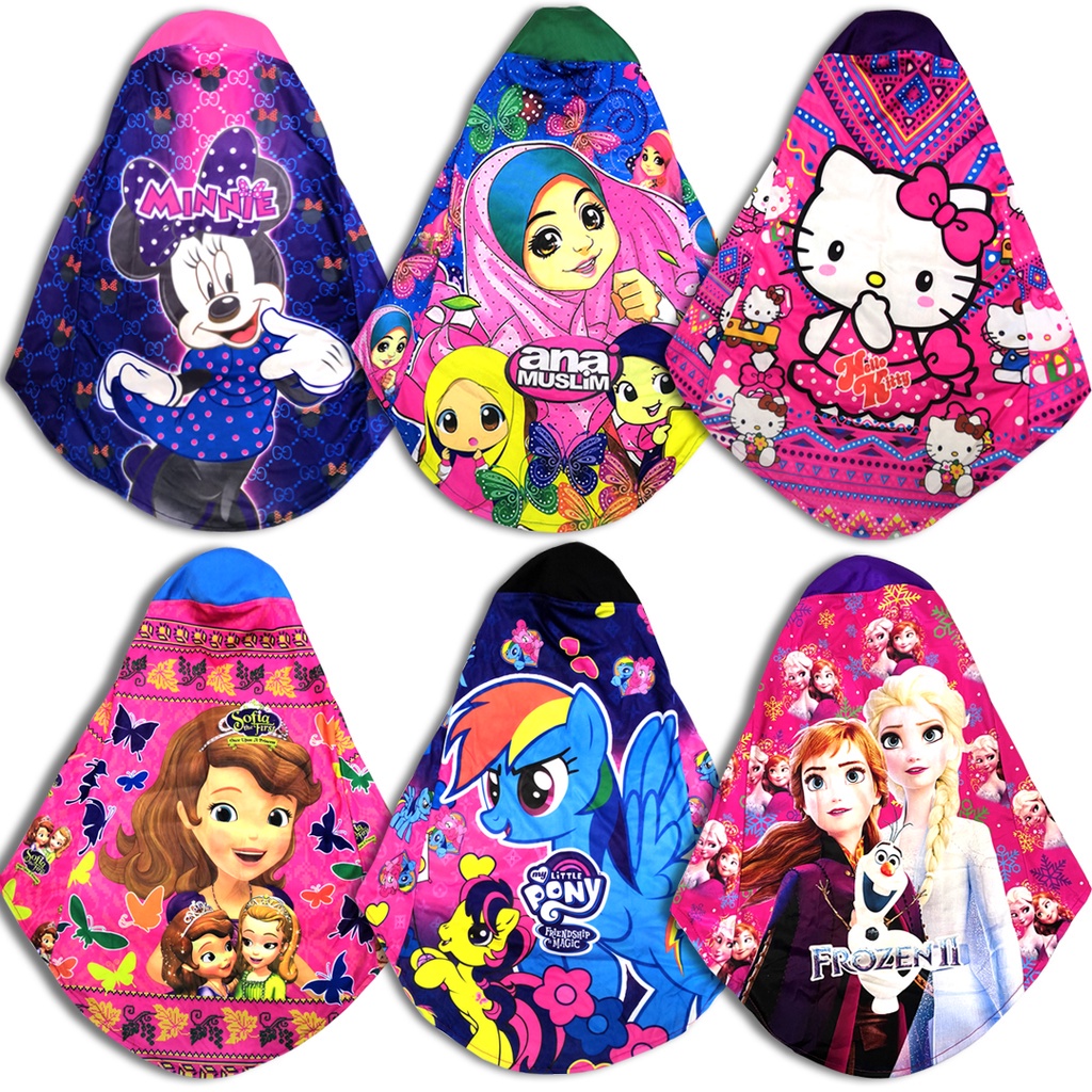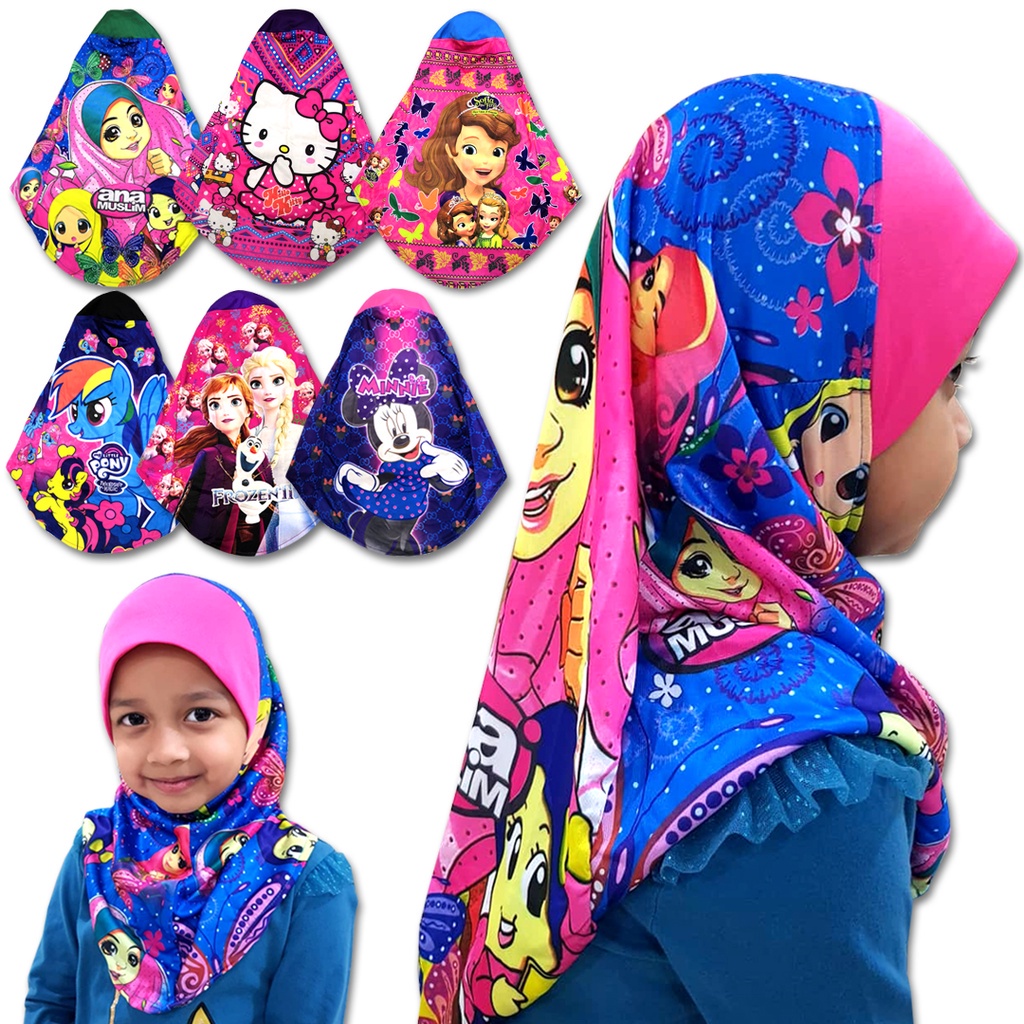 Kids TUDUNG Full Print Microfiber - Random Design and Color. (10Y Below) Shawl Soft Awning Princess Sofia Pony