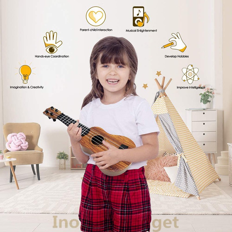 Kids Ukulele Musical Instruments 4 Strings Uke& String&Pick For Beginners Kids Gift Hawaiian Guitar Mainan Muzik