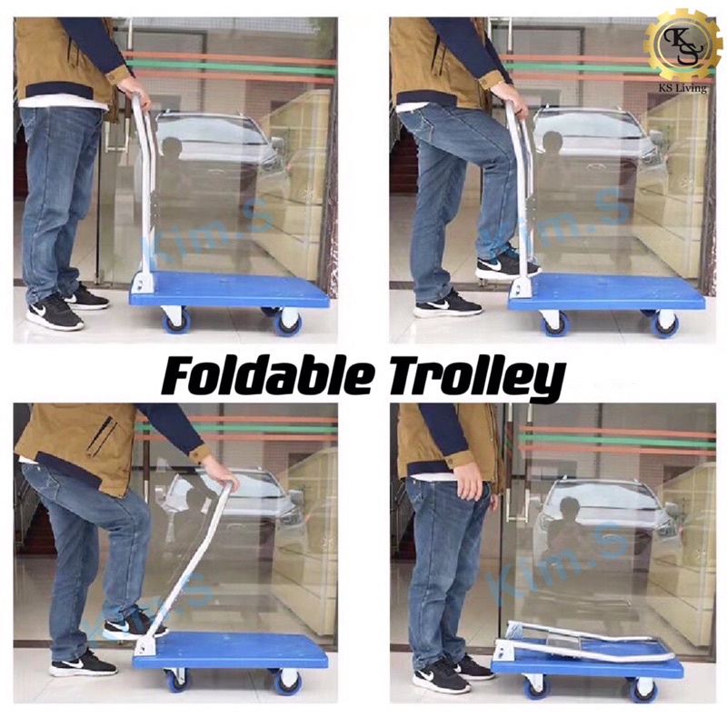 Kim.S PVC Trolley Portable 150KG/300KG Hand Truck Trolley Iron PVC Foldable Kereta Tolak PU Hight Quality