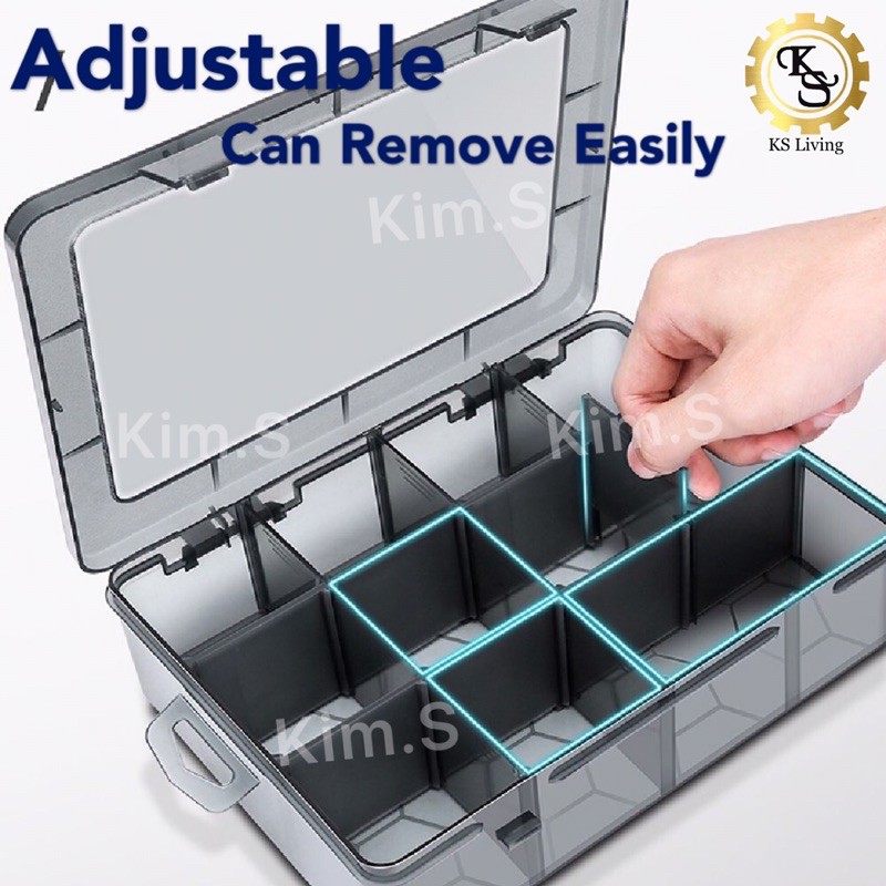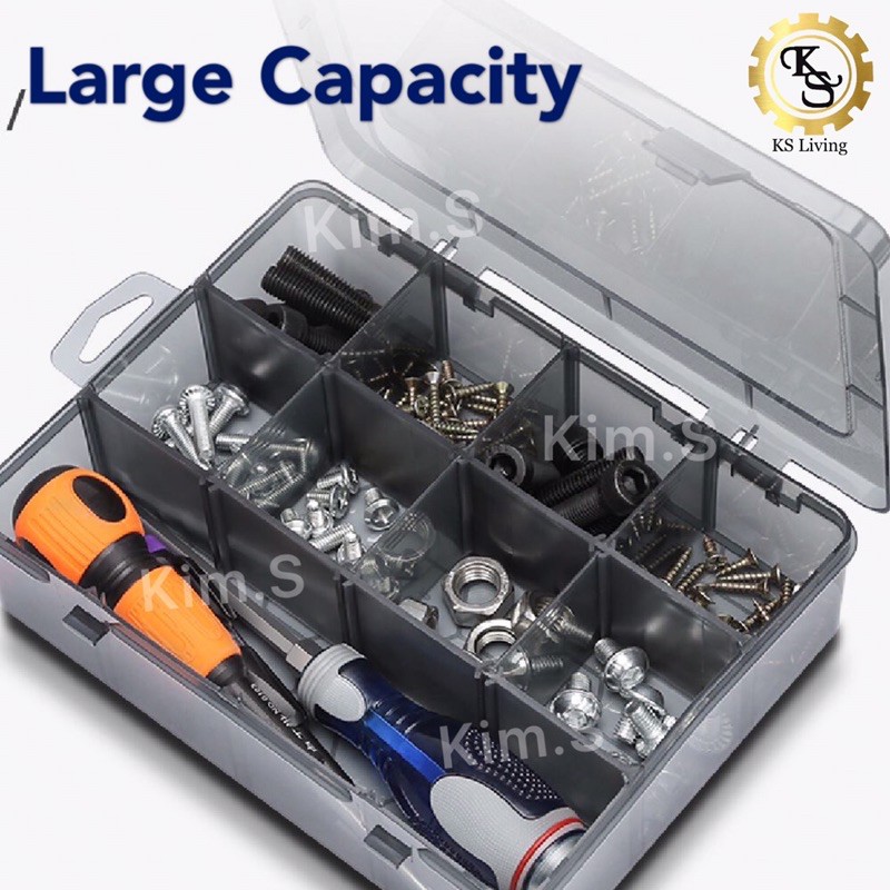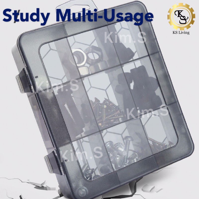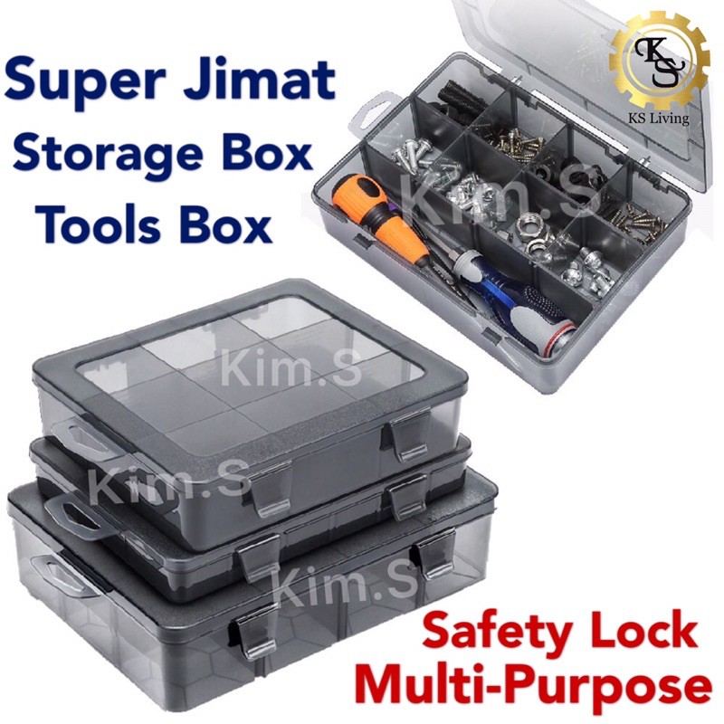 Kim.S Super Jimat Storage Box Tools Box Transparent Adjustable Plastic Hardware Tool Screw Nut Grids Capacity