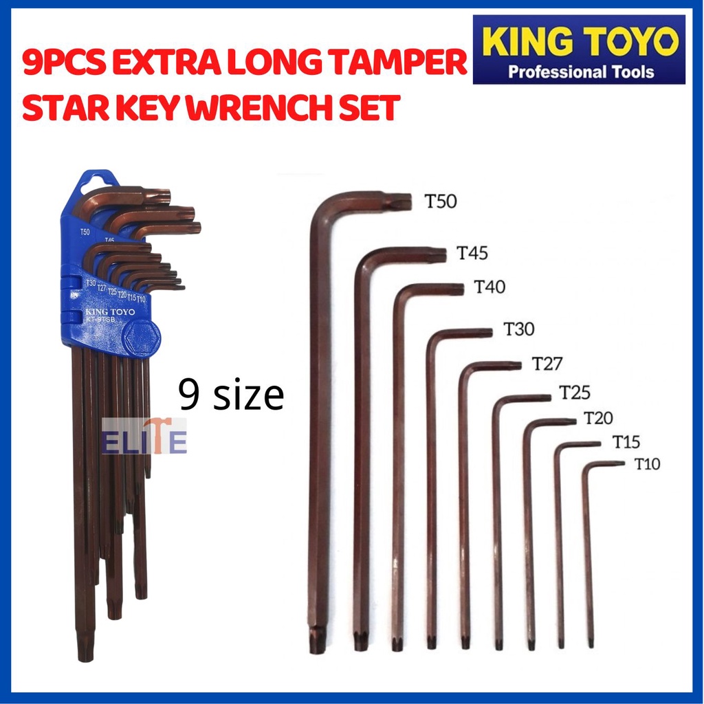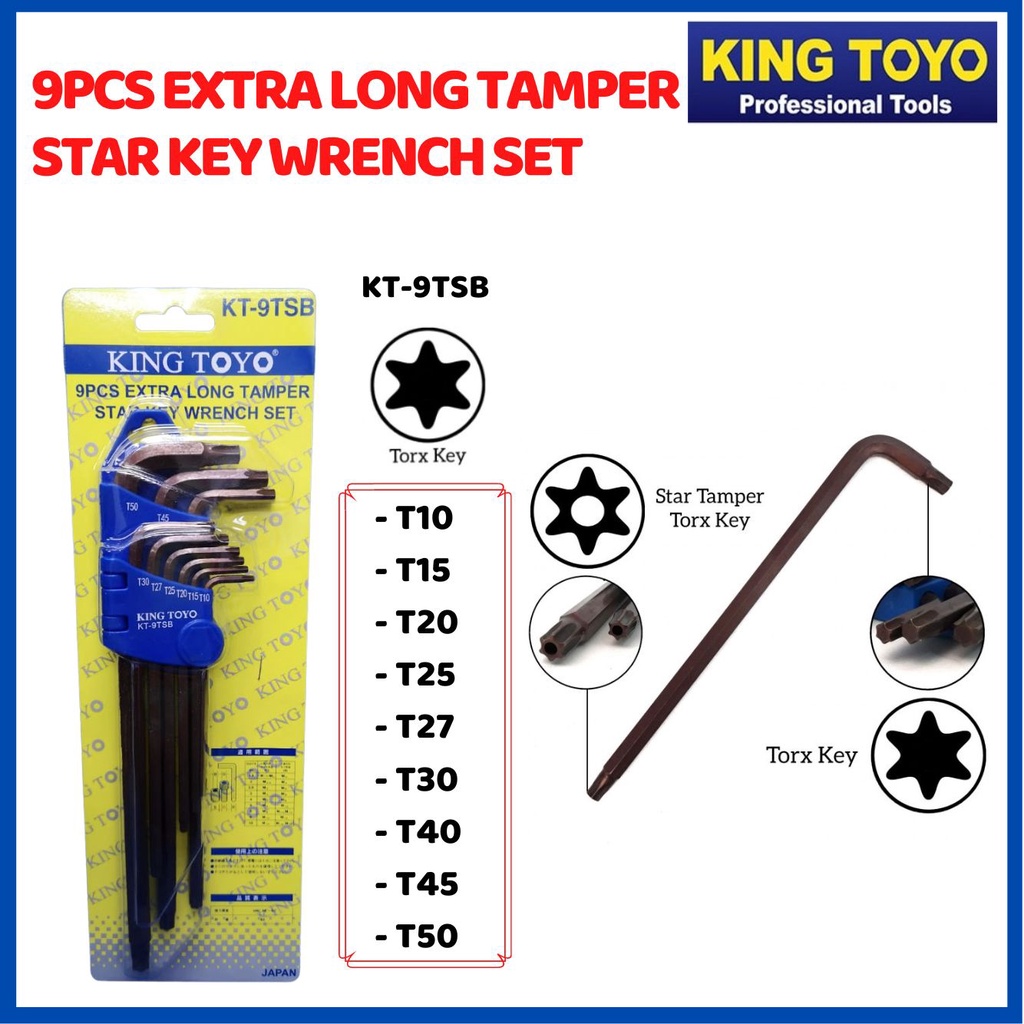 King Toyo 9pcs Extra Long Ball Point Hex Key & Tamper Star Key Torx Key Wrench Set - (KT9HBB & KT9TSB)