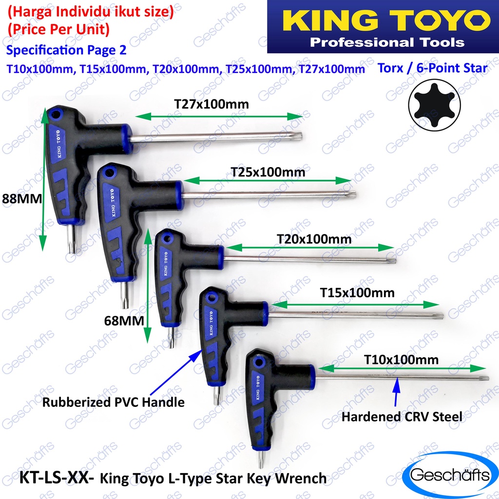 King Toyo L-Type Star Key / Torx Wrench Size: T10 - T55