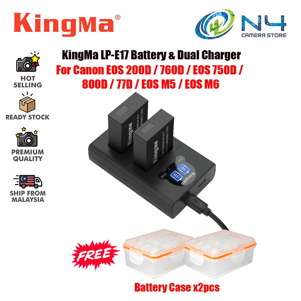 KingMa Camera Battery LP-E17 and LCD Dual Charger Set for Canon EOS R50 R10 R8 850D 200D 750D 760D 800D 77D EOS RP