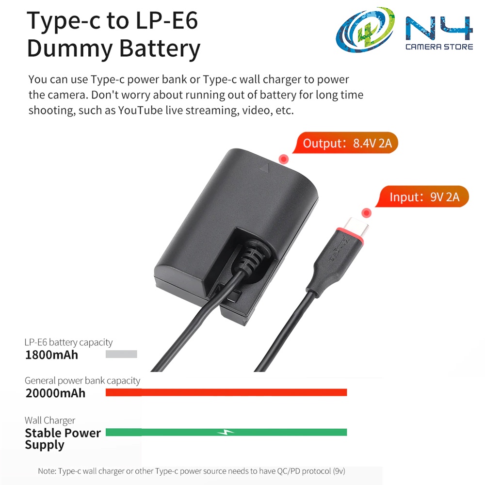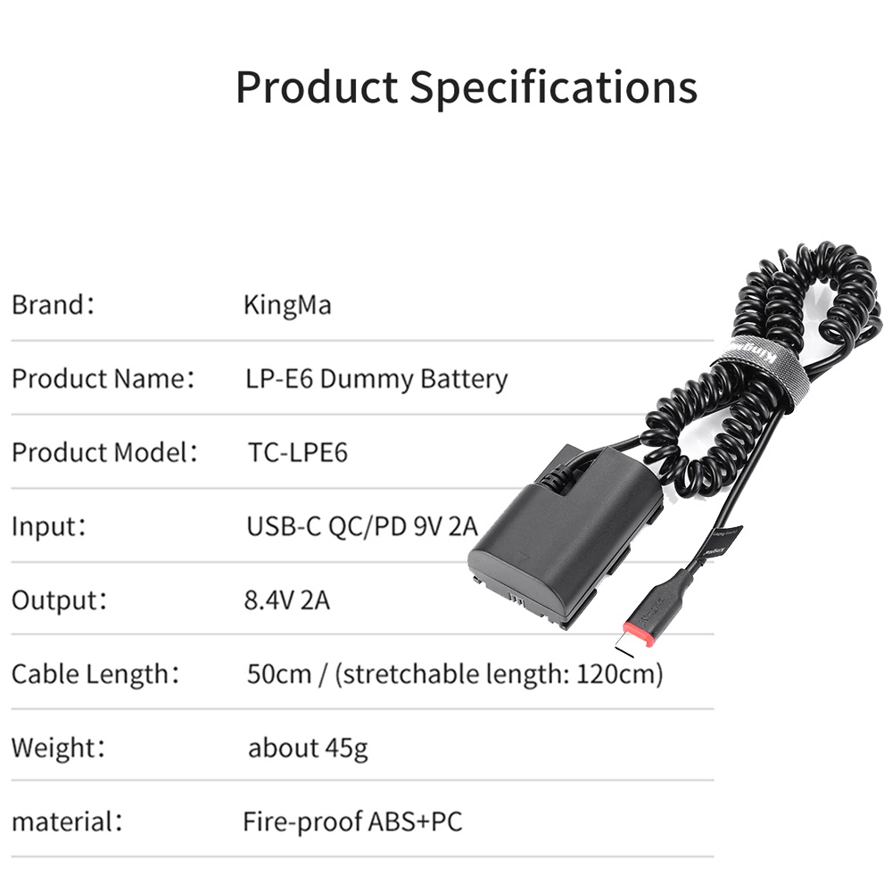 KingMa LP-E6 LP-E6NH USB Type-C Dummy Battery Power Adapter For Canon EOS R5 R6 5DS R 7D 6D 5D3 5D4 90D 80D 70D Camera
