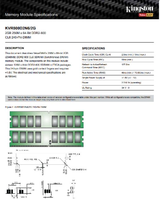 Kingston DDR 2 800Mhz 2GB PC Long dimm Ram (used unit)
