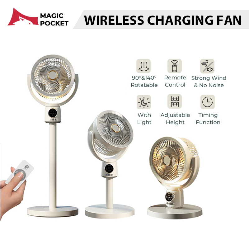 Kipas Camping rotatable wireless Charging fan Retractable Remote control stand Fan with light Desk Outdoor Kipas berdiri