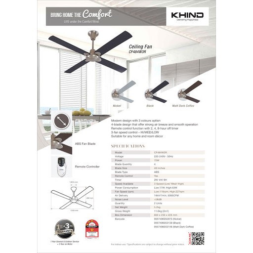 Kipas Siling KDK Panasonic 3 Blade Kipas Angin Syiling Khind Kipas Kdk Ceiling Fan 60"/56" 3 Blade Ceiling Fan