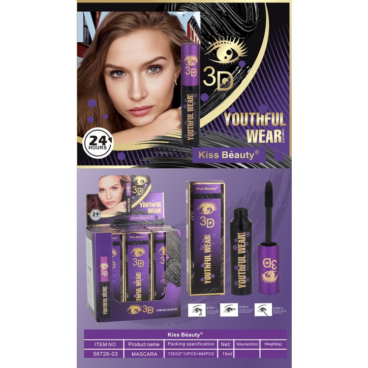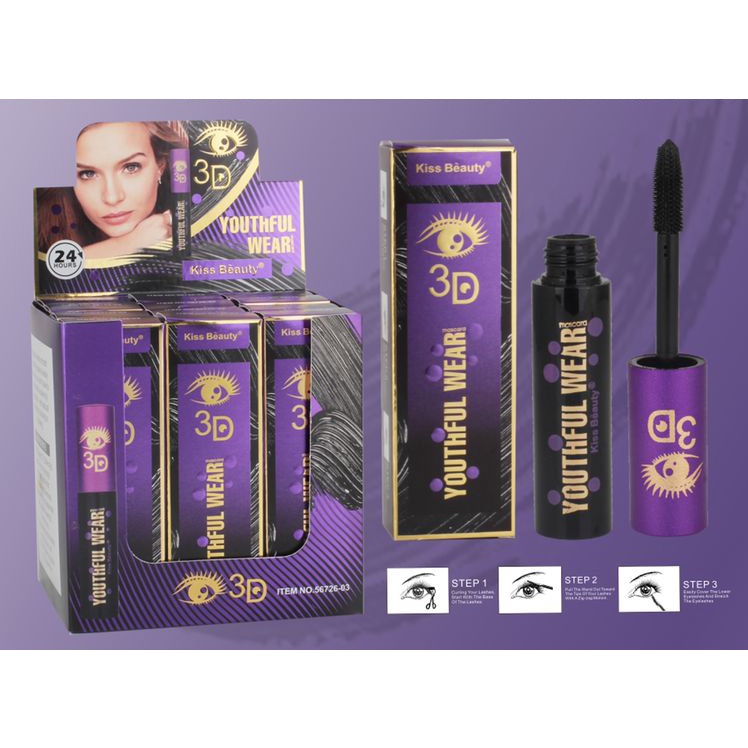 Kiss Beauty 3D Mascara – Youthful Wear (Black) (Lengthening | Volumizing | Smudge-Proof)