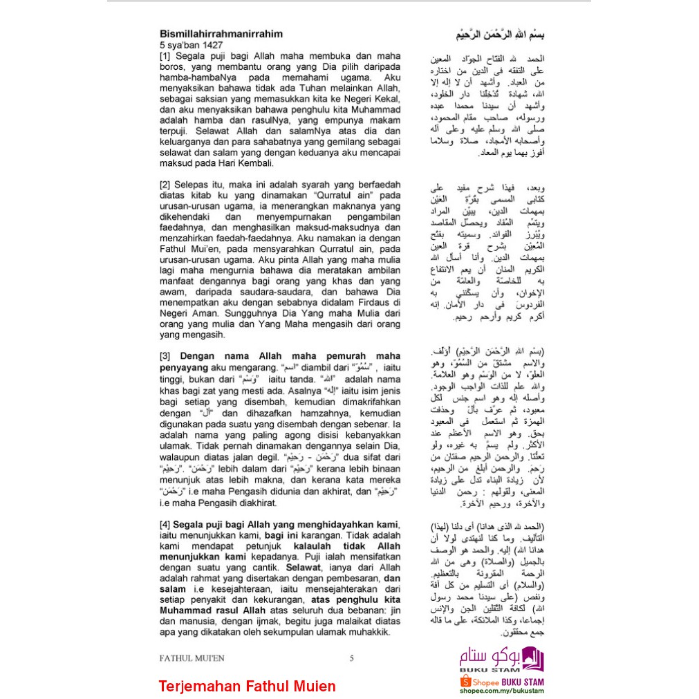Kitab Terjemahan Fathul Muin Syarah Kepada Qurratul 'Ain (Bahasa Arab & Bahasa Melayu) Bagi Syeikh Zainuddin Al-Malibari