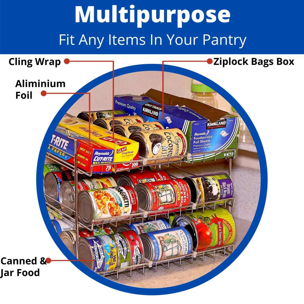 Kitchen 3-Tier Multipurpose Kitchen Cabinet Storage Organizer. Rack, Canned Food Rack Organizer,