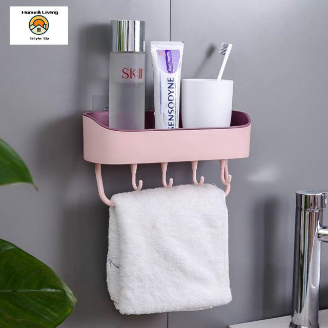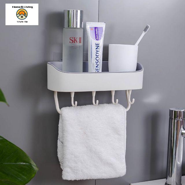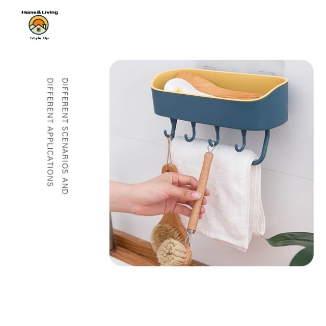 Kitchen Bathroom Shelf Multifunction Shelf with Towel Rack Kitchen Plastic Storage Organizing Rack with Hook