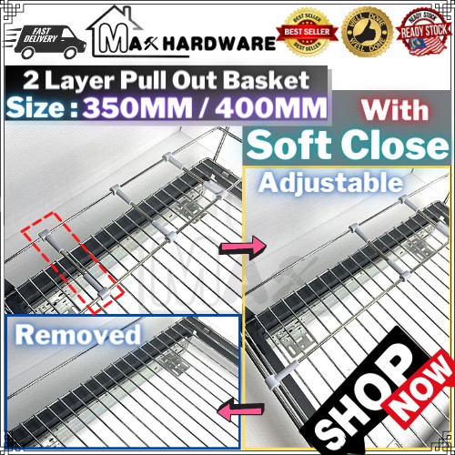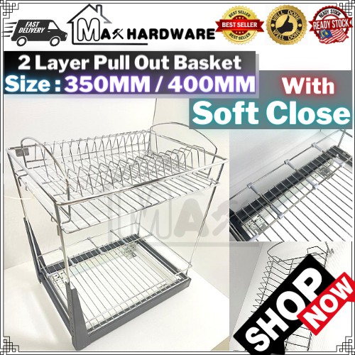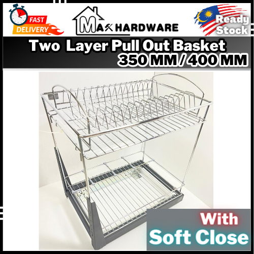 Kitchen Cabinet 2 Layers ( 350MM / 400MM ) Soft Close Multi-function Pull Out Basket ( Chrome )