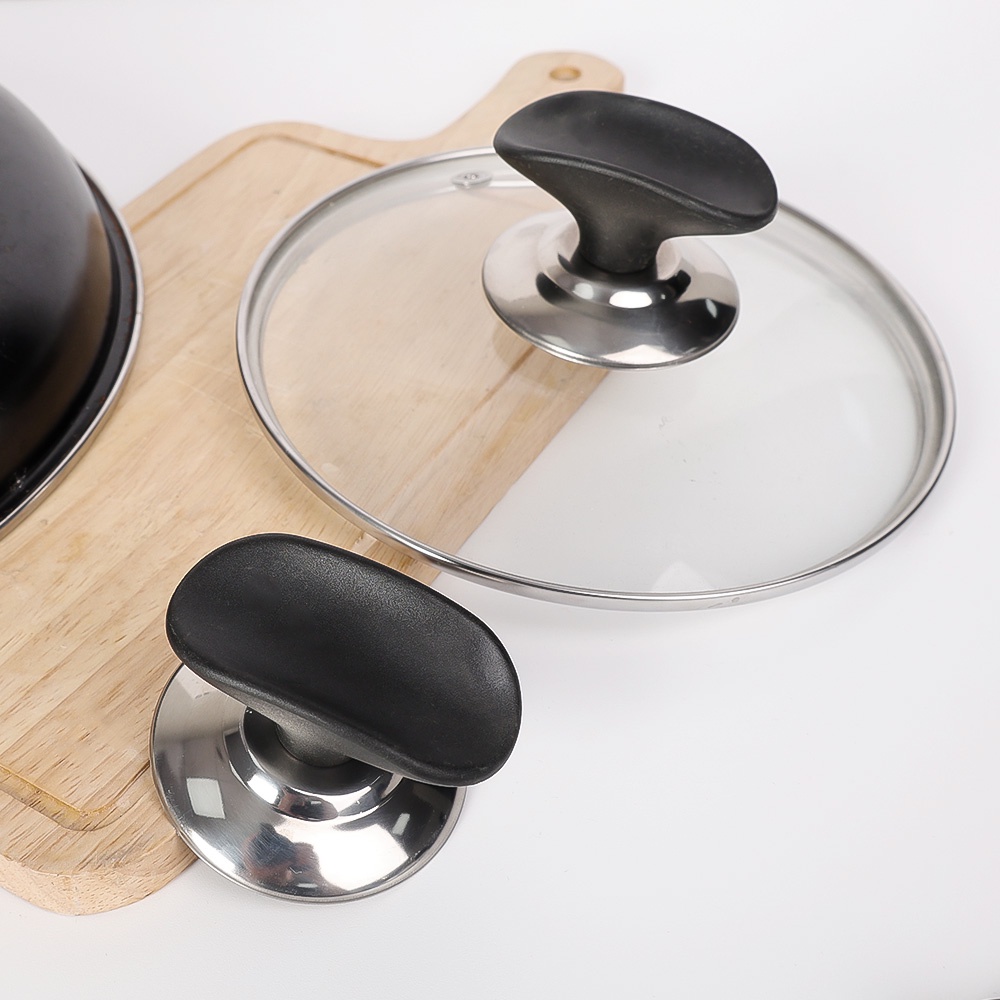Kitchen Cookware Handgrip / Heat-Resistant Cooking Pot Cover / Lifting Handle Replacement Pan Lid Hand Grip Knob / Universal Stainless Steel Black Pot Lid Handle