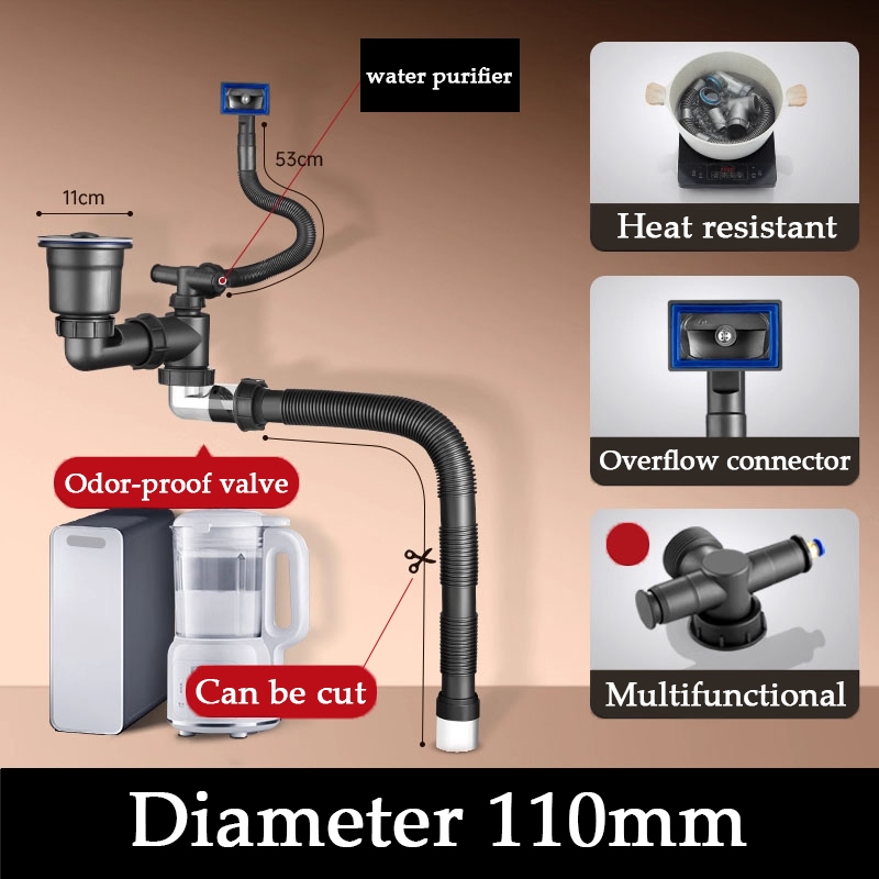 Kitchen Drain Pipe/Sink Drain Pipe/Double Sink Drain Kit/Odor-Resistant, High-Temperature-Resistant, And Anti-Clogging