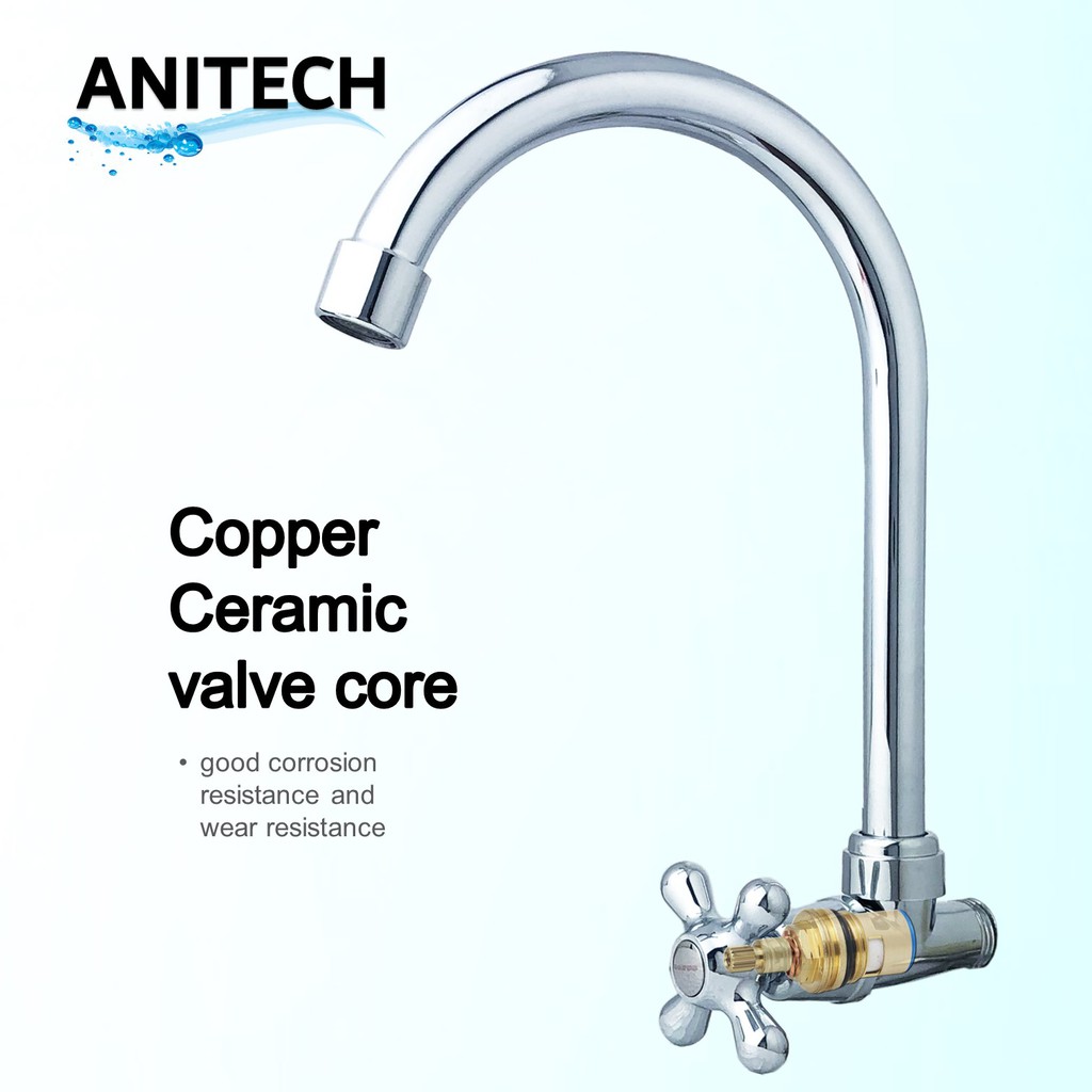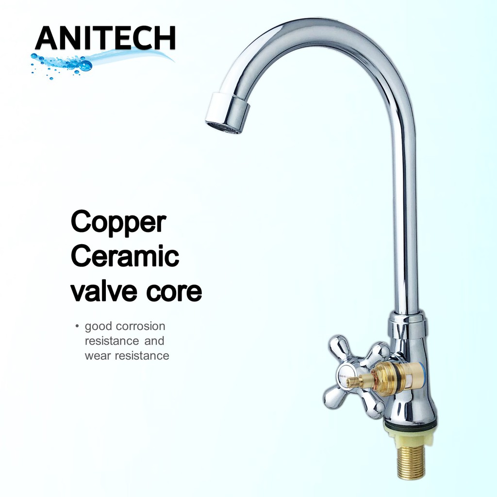 Kitchen Faucet Pillar Mounted Basin Sink Tap Plated Water Tap Single Handle Swivel Pillar Mounted Sink Bathroom ANITECH