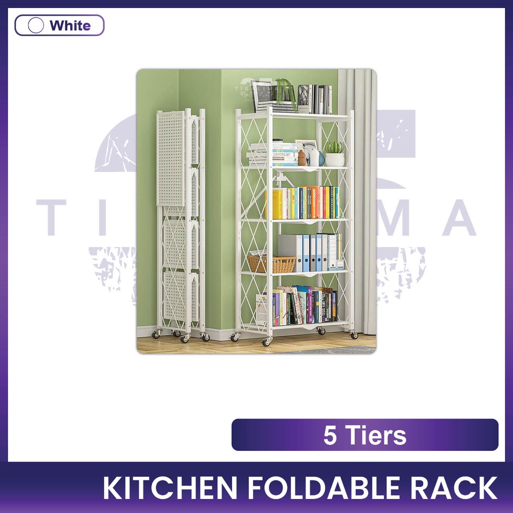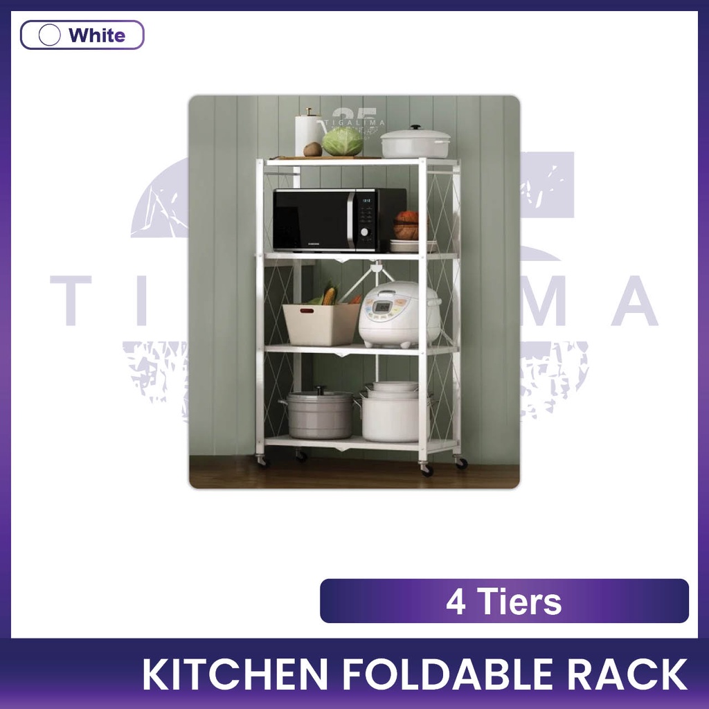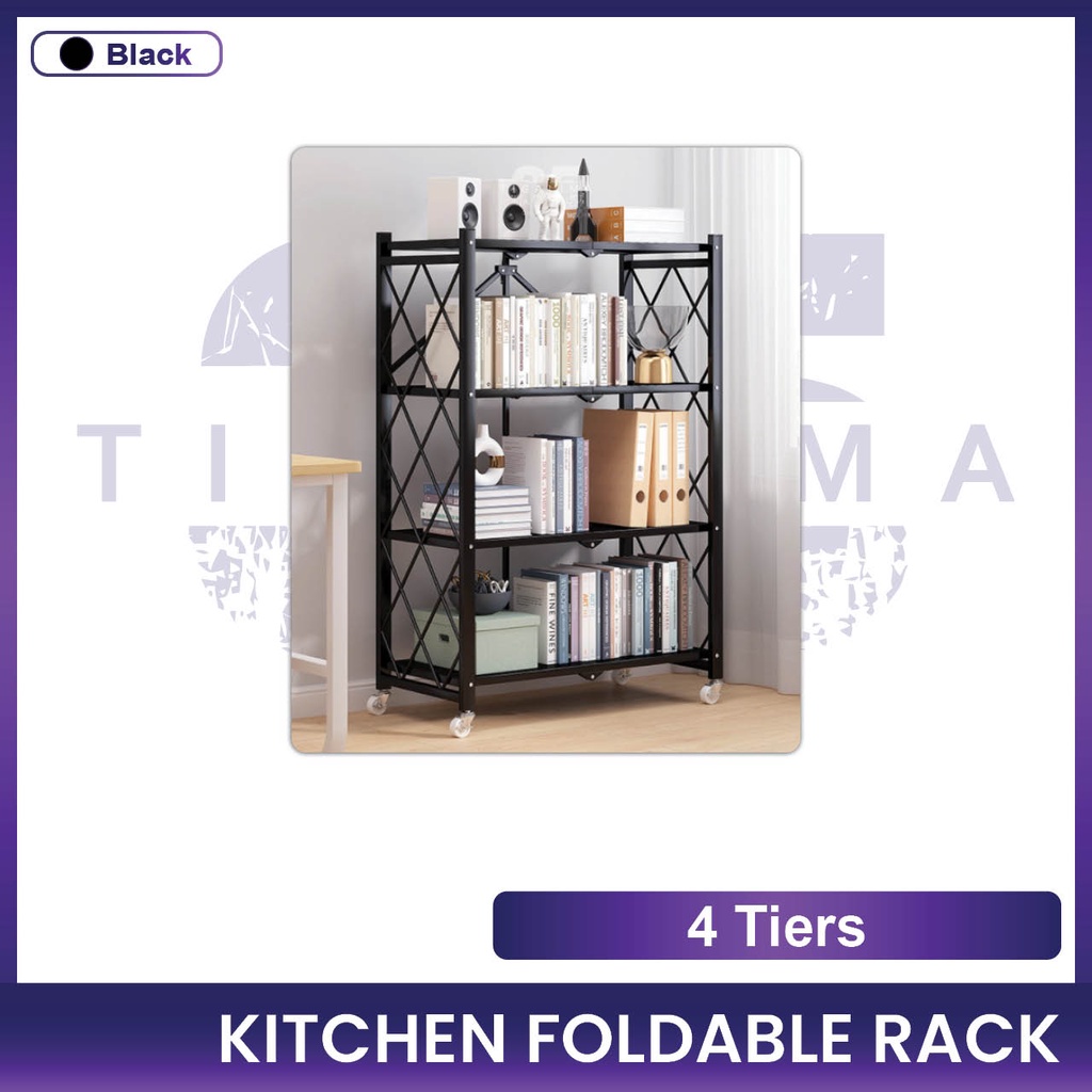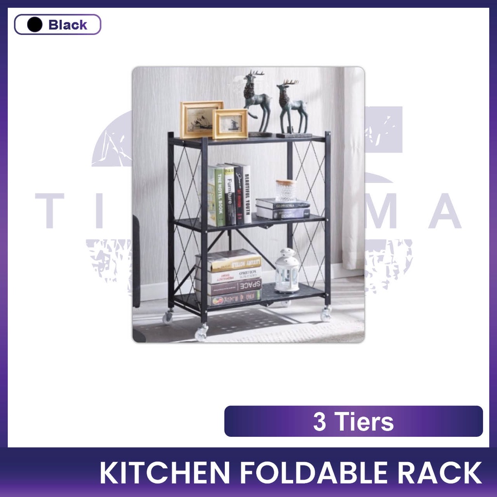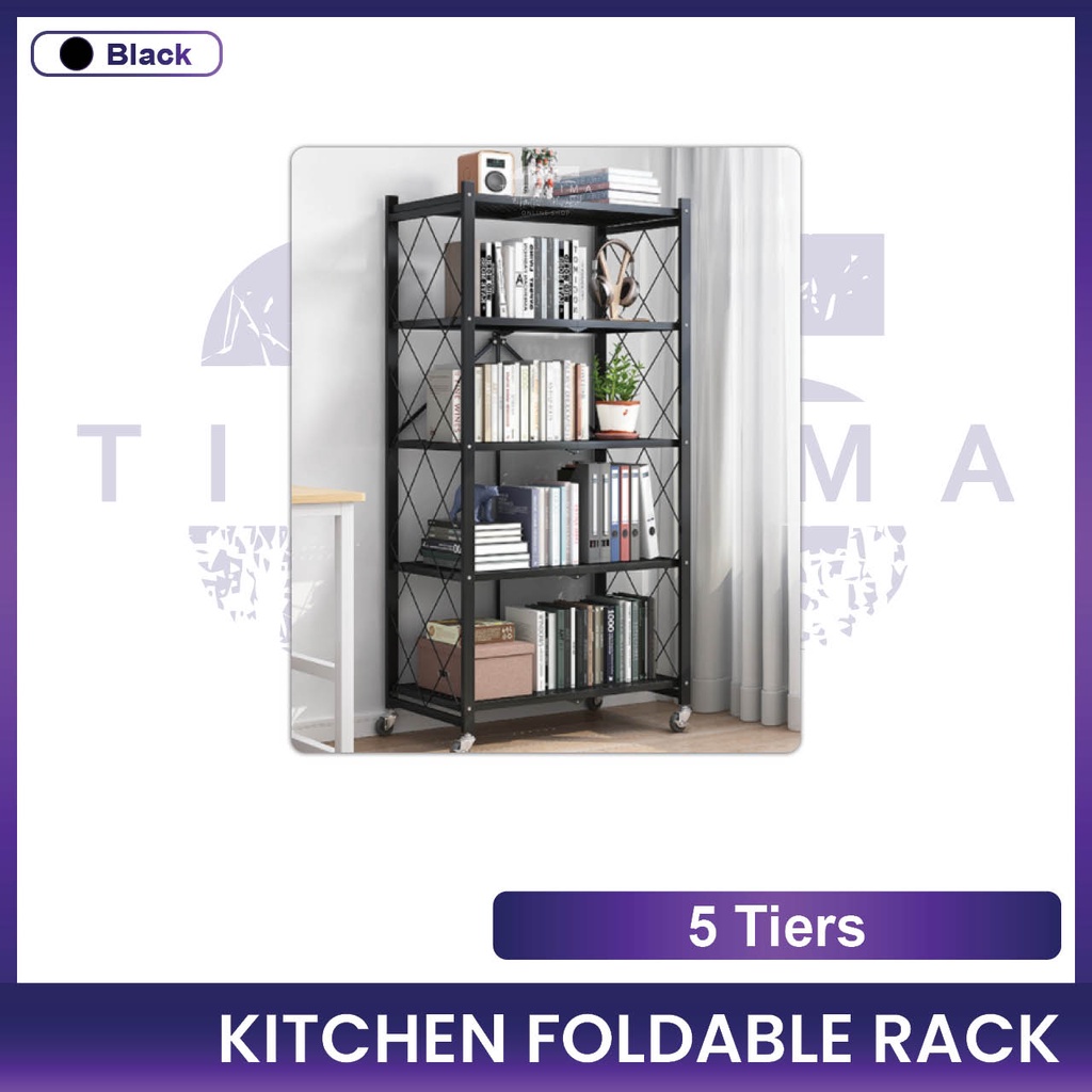 Kitchen Foldable Rack 3 Tiers / 4 Tiers / 5 Tiers Rack Storage Organizer Rack With Wheel Stainless Steel Black White