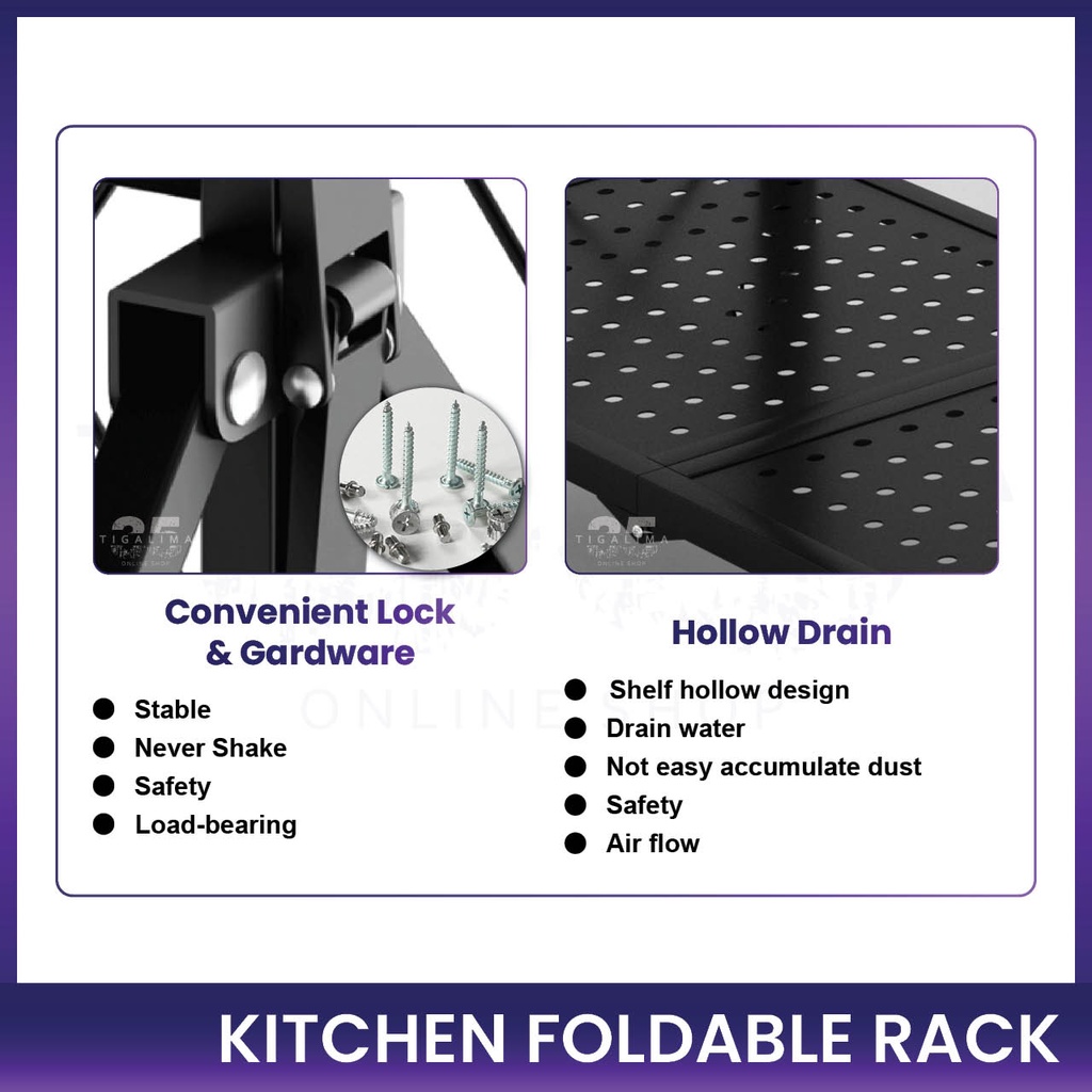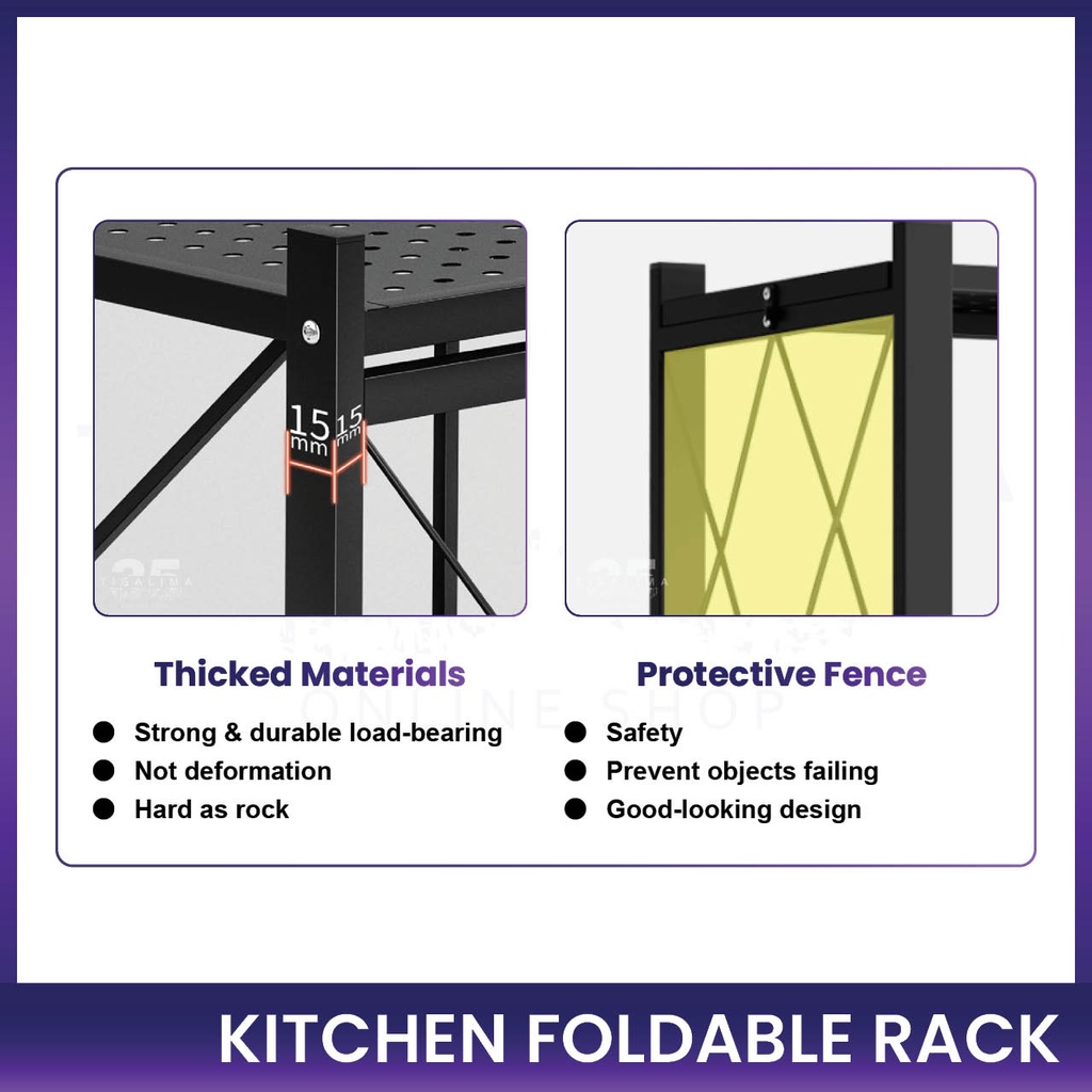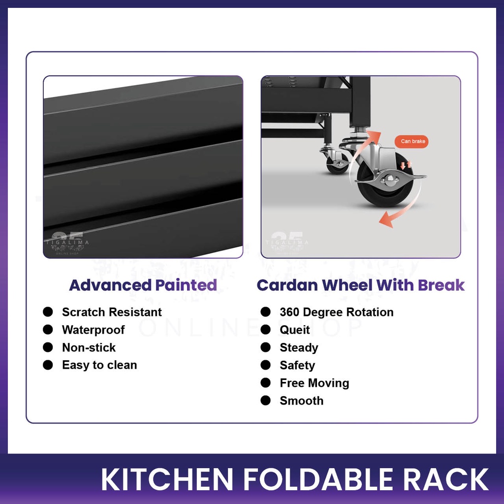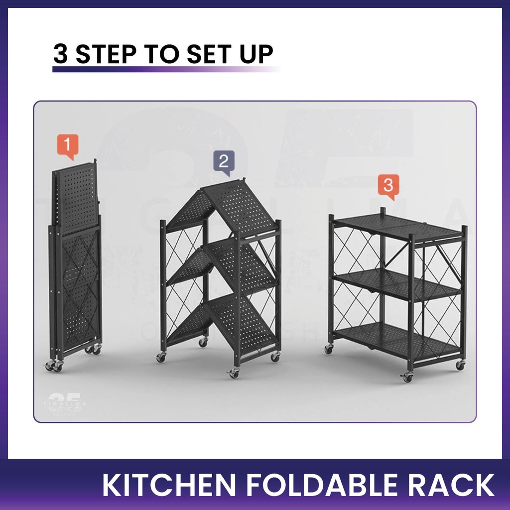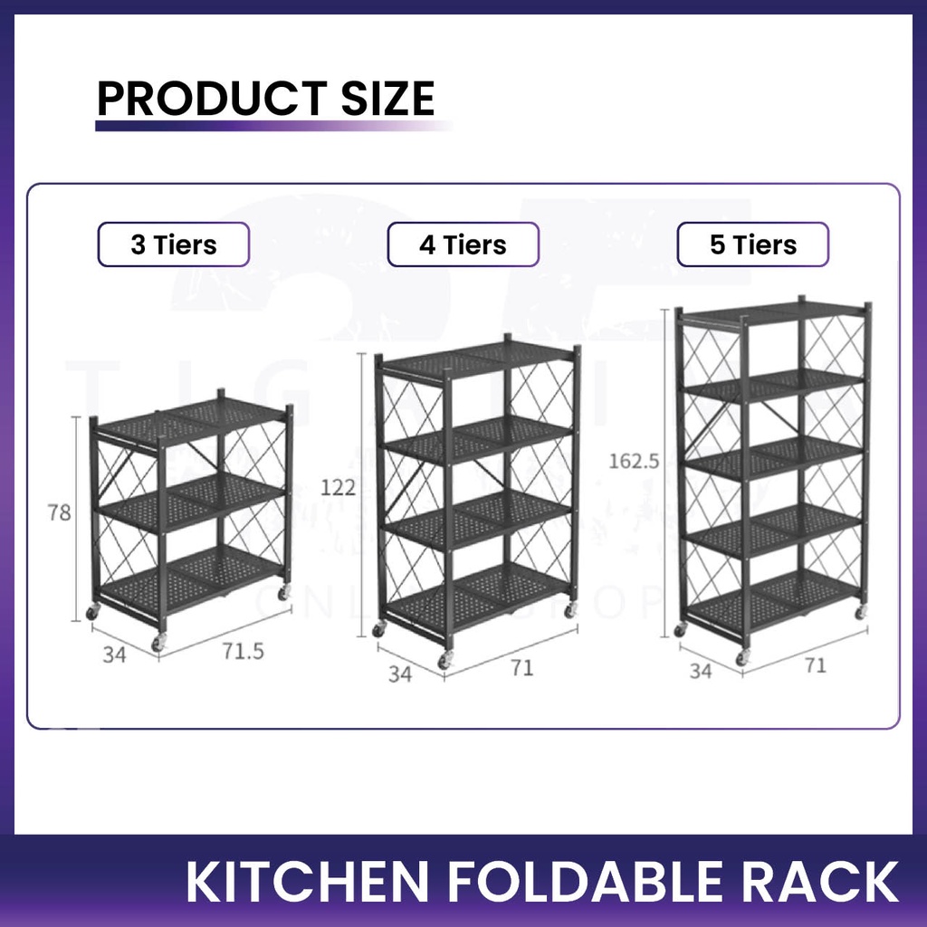 Kitchen Foldable Rack 3 Tiers / 4 Tiers / 5 Tiers Rack Storage Organizer Rack With Wheel Stainless Steel Black White