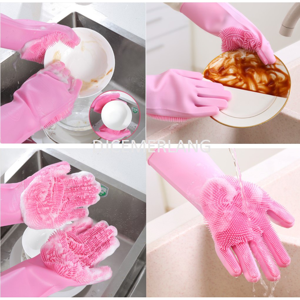 Kitchen Glove Silicone Glove Washer 1pair Multipurpose Dishwashing Gloves Sarung Tangan Cuci Pinggan